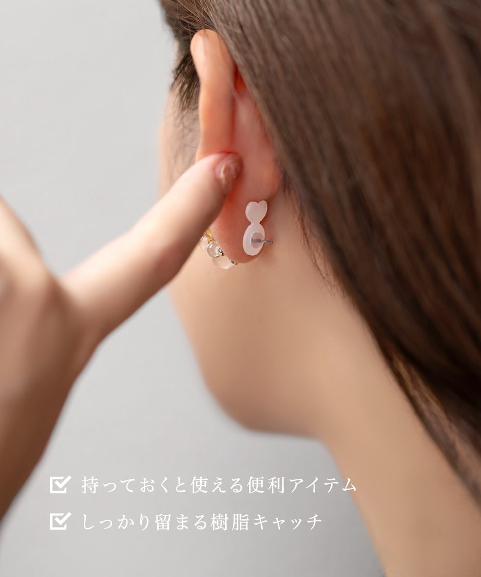 シリコン樹脂素材で、金属を使用していないためアレルギーの心配もなく安心◎ついつい紛失してしまいがちなキャッチの予備としても便利。
