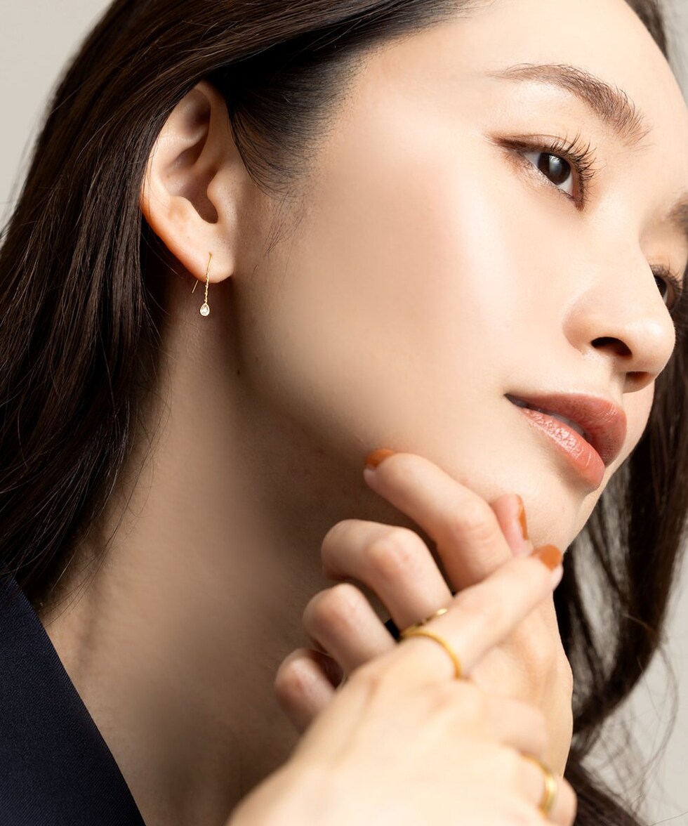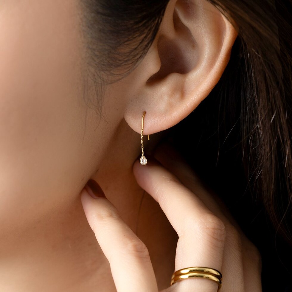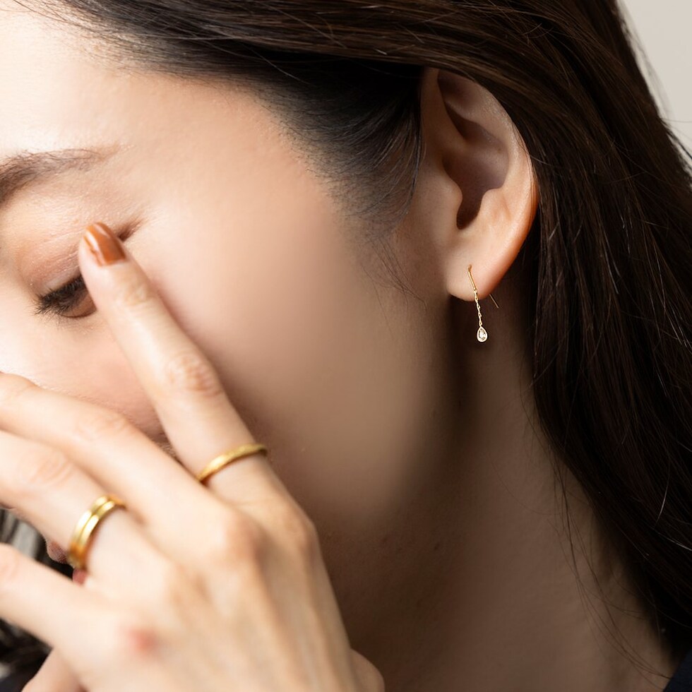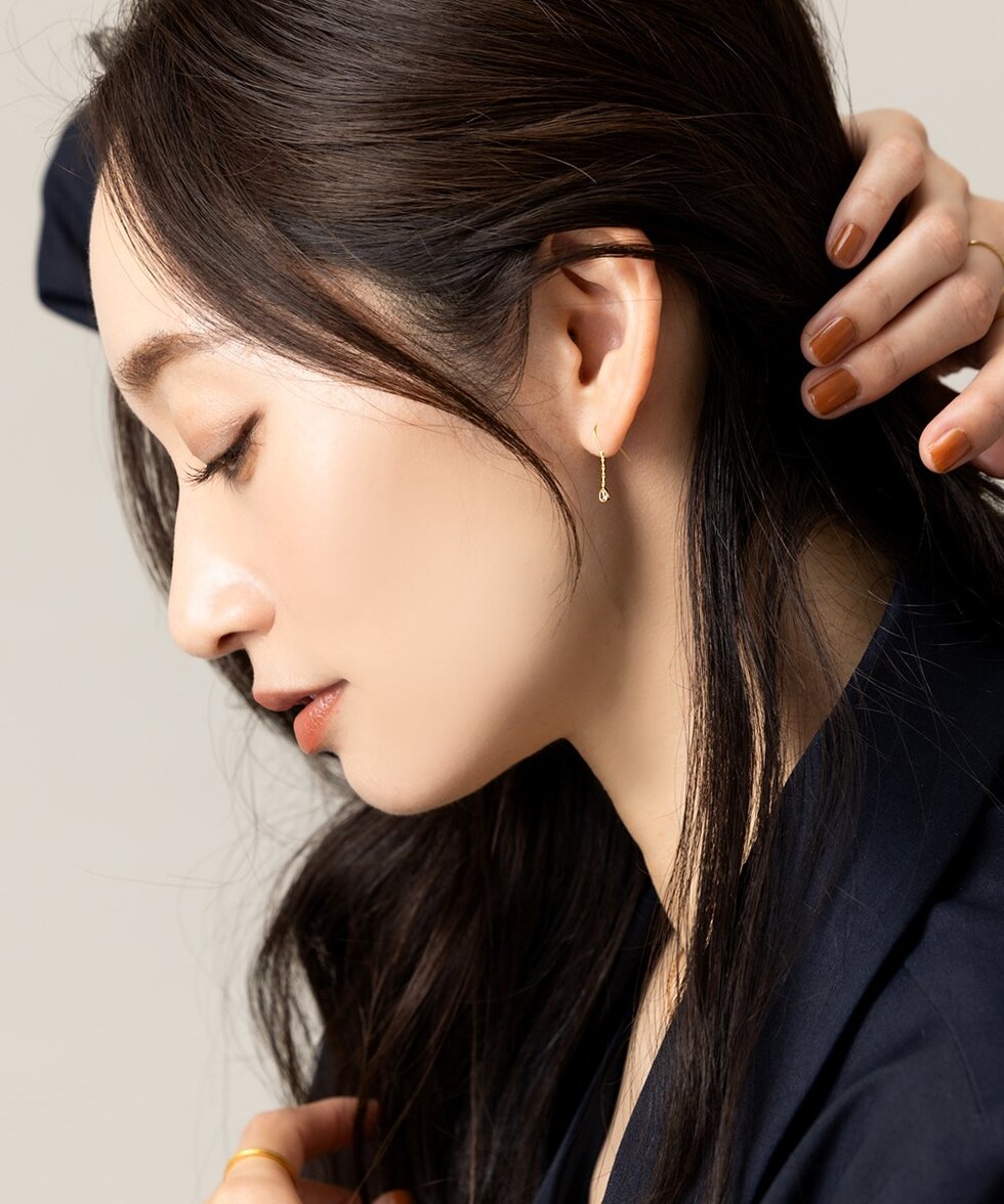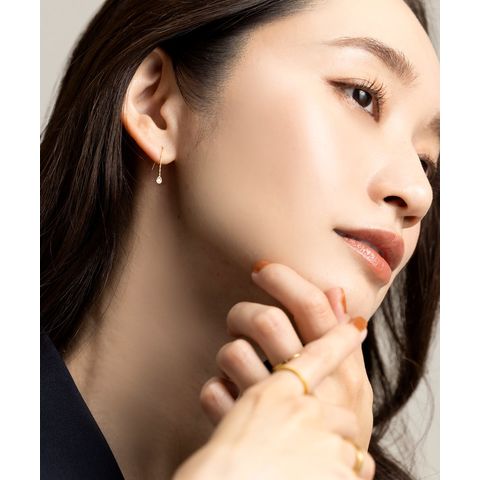 キラキラと煌く小粒なドロップビジューを飾ったフックピアス。シンプルで洗練されたデザインがさりげなく上品な雰囲気に。控えめな揺れ感が可愛くデイリーに活躍してくれるひと品◎