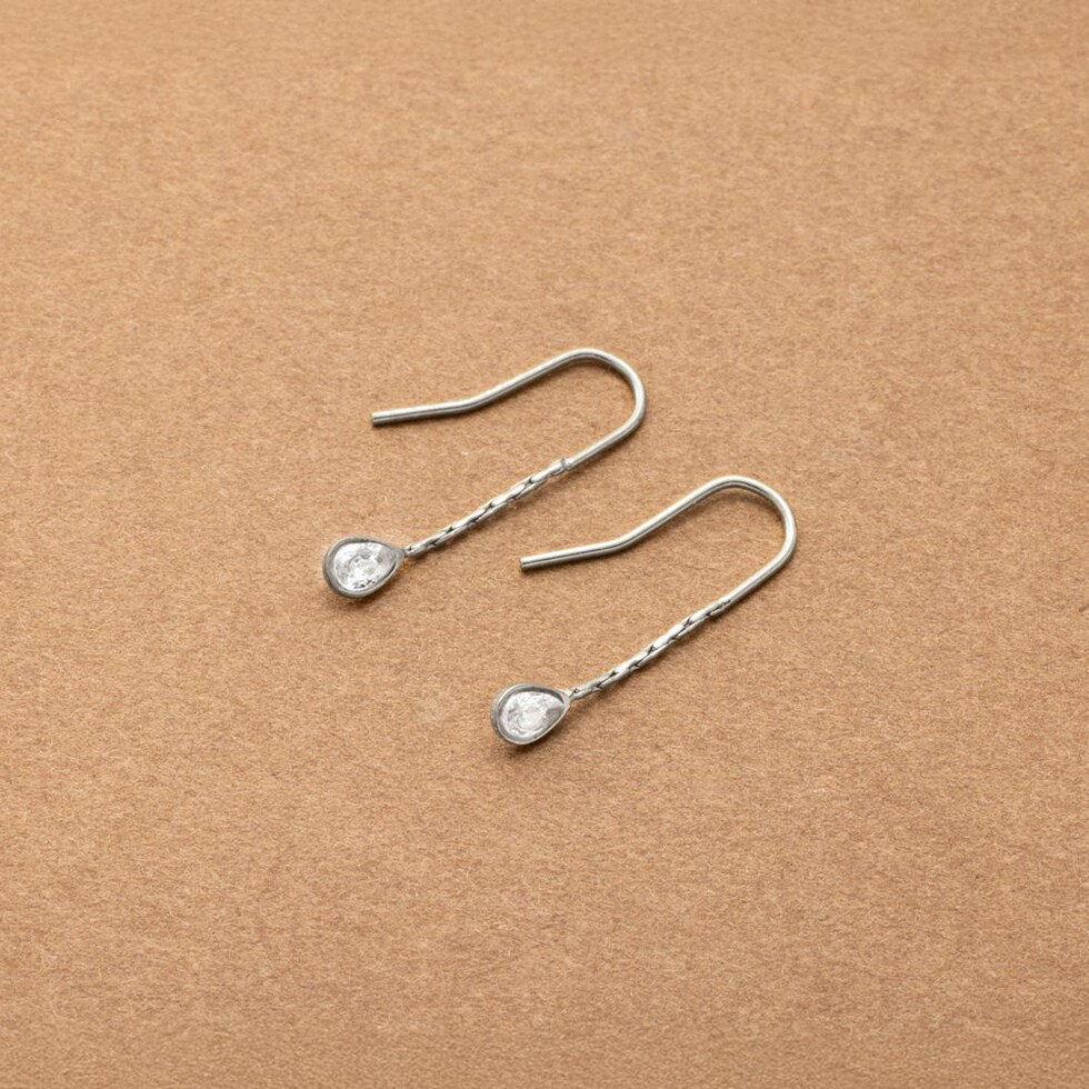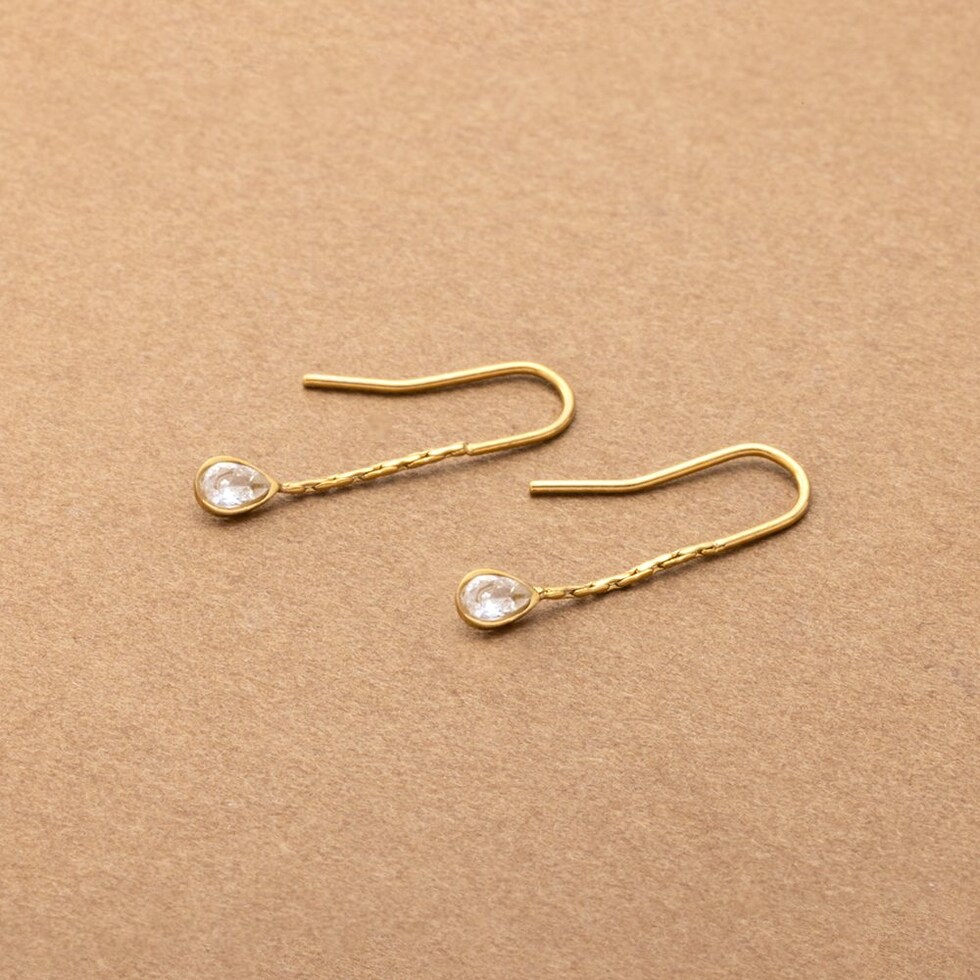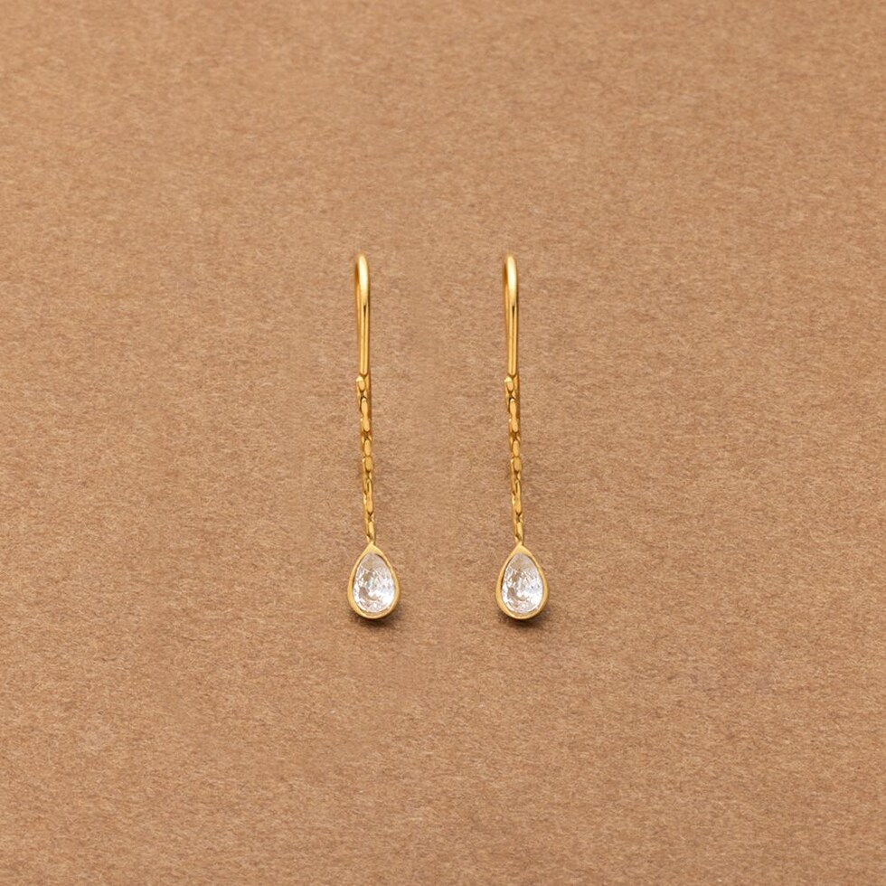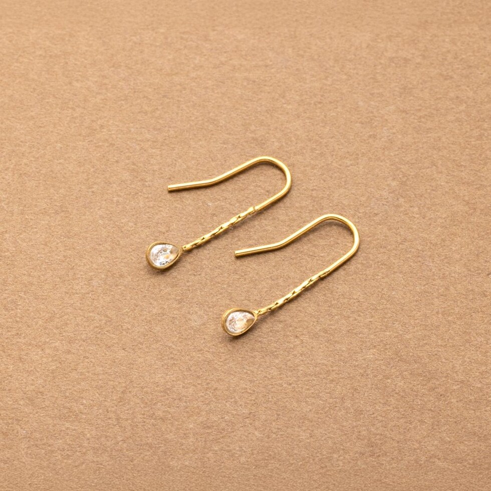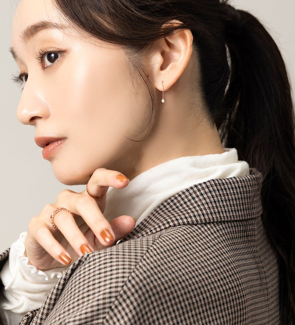 キラキラと煌く小粒なドロップビジューを飾ったフックピアス。シンプルで洗練されたデザインがさりげなく上品な雰囲気に。控えめな揺れ感が可愛くデイリーに活躍してくれるひと品◎