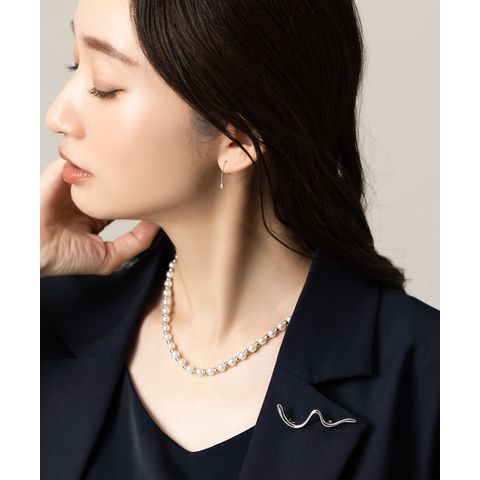 フックとチェーン、ビジューは溶接で仕上げている為無駄な金具がなくスッキリ。スキマのない細身のチェーンを使用して細部にまで凝った仕上がりに。