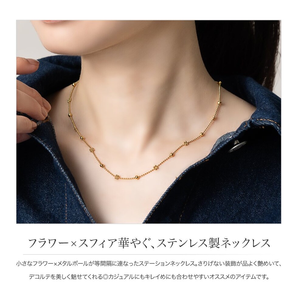 ネックレス ステンレス 金属アレルギー サージカルステンレス レディース つけっぱなし ショート チェーン メタルボール 艶 フラワー ステーション cream dot ゆうパケット [ゴールド_ワンサイズ]