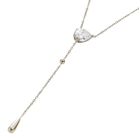 ドロップビジューが煌めくステンレス製Y字ネックレス。ドロップカットを施したひと粒ビジューがデコルテを美しく主張。控えめなメタルドロップが揺らめくY字フォルムでこなれた抜け感を演出してくれる頼れる一本。