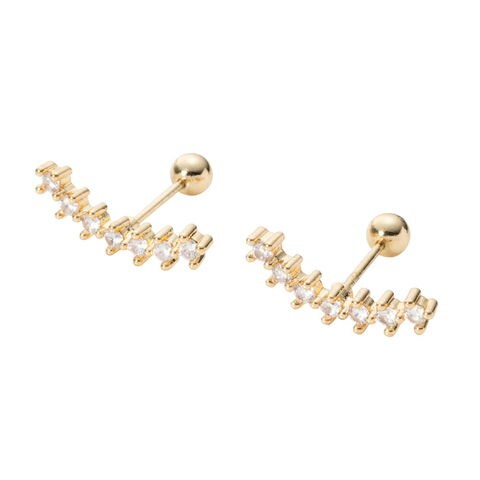 耳たぶに沿うように緩やかにカーブを描いたビジューが煌めくネジロック式ピアス。華やかな輝きで顔周りにアクセントを添えてくれます。ネジのようにくるくると回して留める、外れにくいネジロック式キャッチで後ろ姿も◎