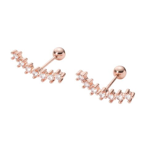 耳たぶに沿うように緩やかにカーブを描いたビジューが煌めくネジロック式ピアス。華やかな輝きで顔周りにアクセントを添えてくれます。ネジのようにくるくると回して留める、外れにくいネジロック式キャッチで後ろ姿も◎