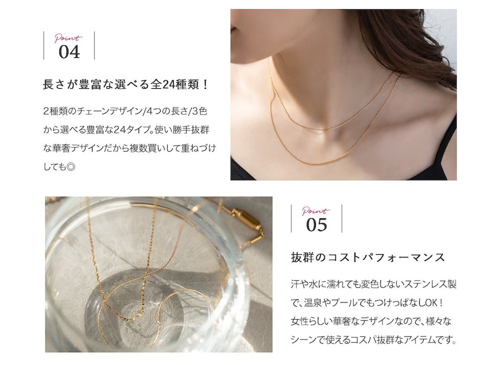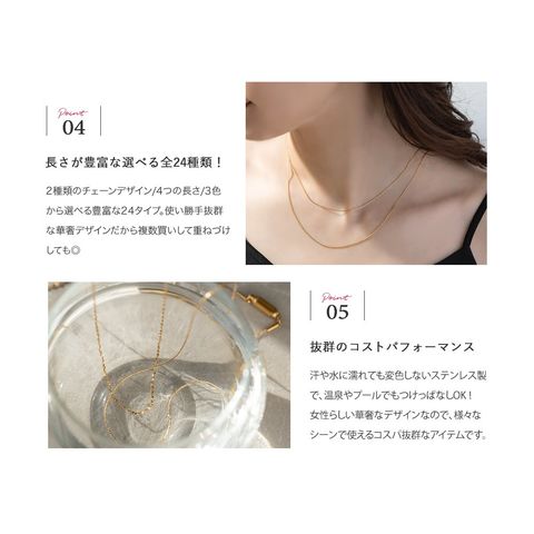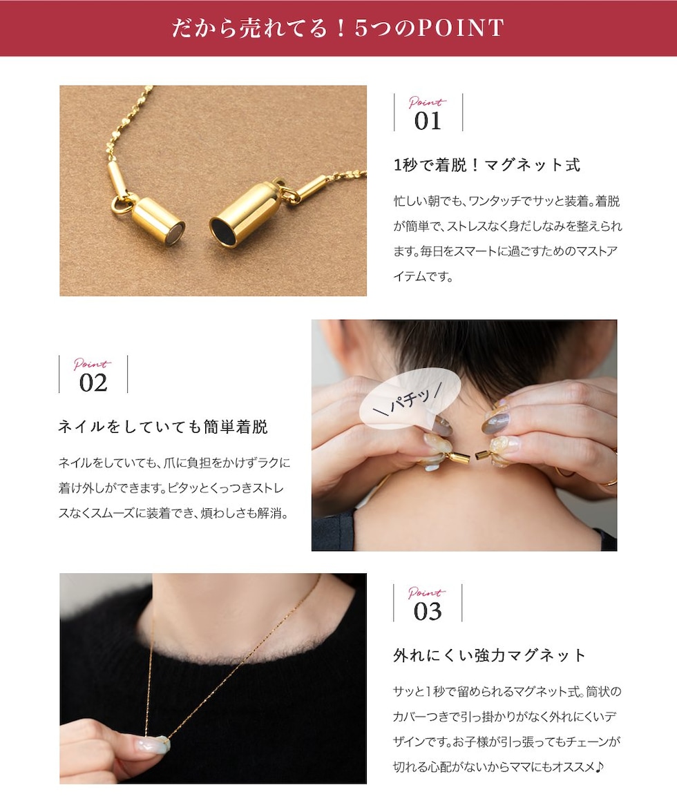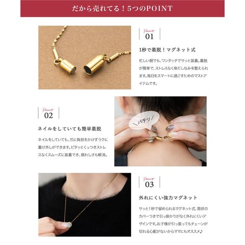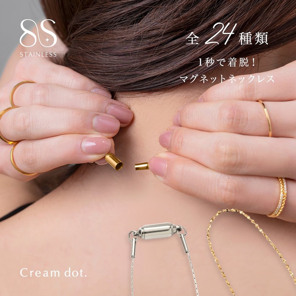 ネックレス ステンレス 金属アレルギー サージカルステンレス レディース マグネットクラスプ 1秒着脱 ワンタッチ 簡単装着 つけっぱなし ステンレス チェーン スキンジュエリー 4サイズ 2タイプ cream dot ゆうパケット [A:ゴールド_40cm]