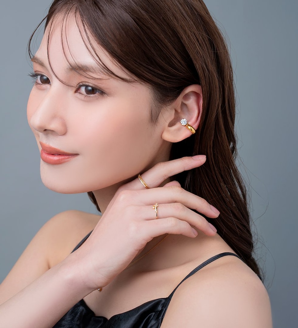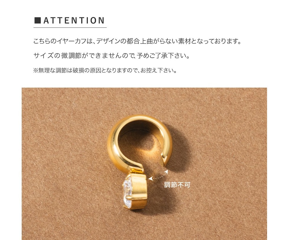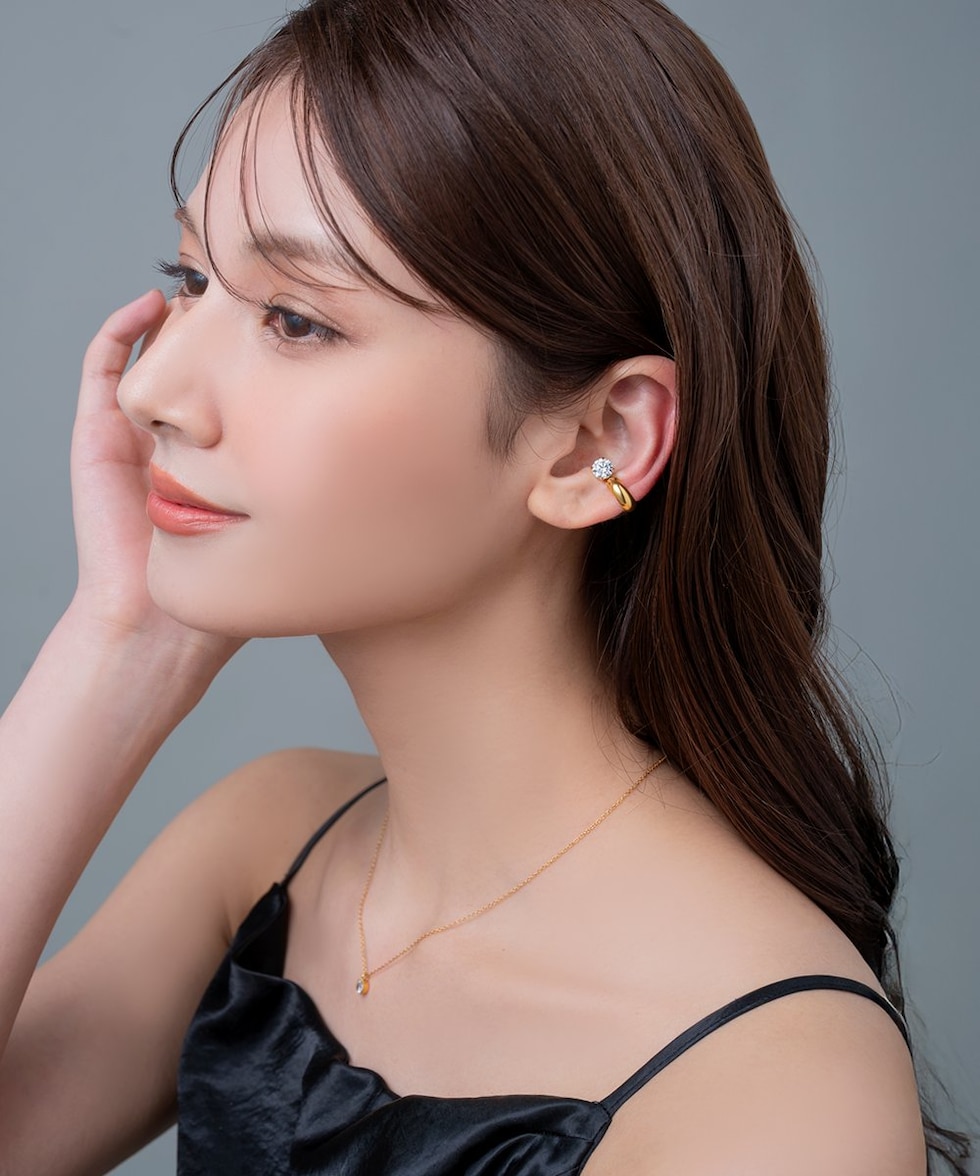 一粒ビジューがアクセントになるイヤーカフ。艶やかでぷっくりとしたメタルが、程よい存在感をプラスします。耳に沿うビジューが新鮮な雰囲気に◎水濡れや傷に強く、肌に優しいステンレス製で、デイリーに使えるアイテム。