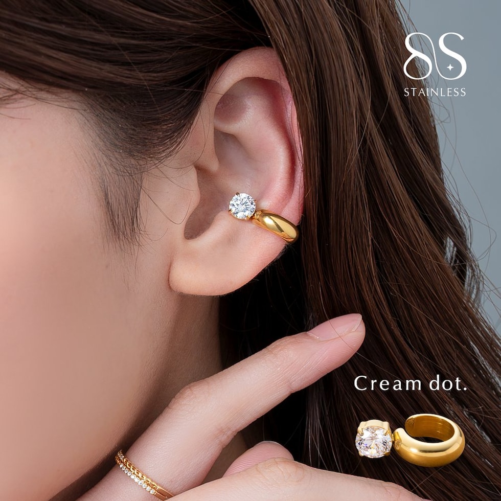 イヤーカフ ステンレス 金属アレルギー サージカルステンレス レディース イヤーカフ つけっぱなし イヤカフ 片耳用 一粒ビジュー メタル ぷっくり cream dot ゆうパケット [ゴールド_ワンサイズ]