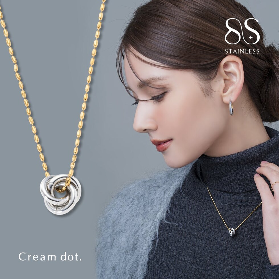 ネックレス ステンレス 金属アレルギー サージカルステンレス レディース つけっぱなし ショート チェーン ツイスト ノット コンビカラー ライスチェーン cream dot ゆうパケット [ミックス_ワンサイズ]
