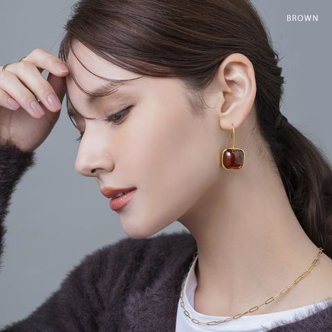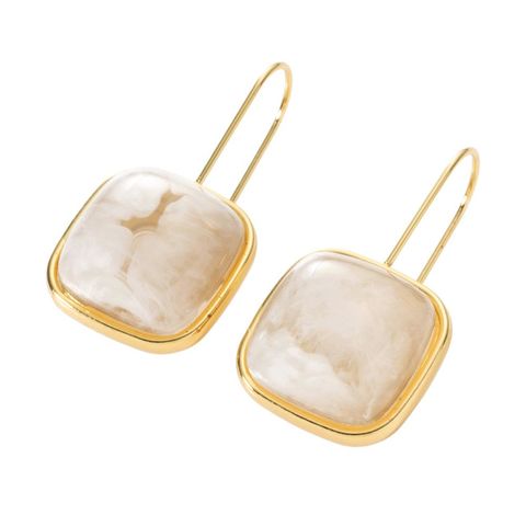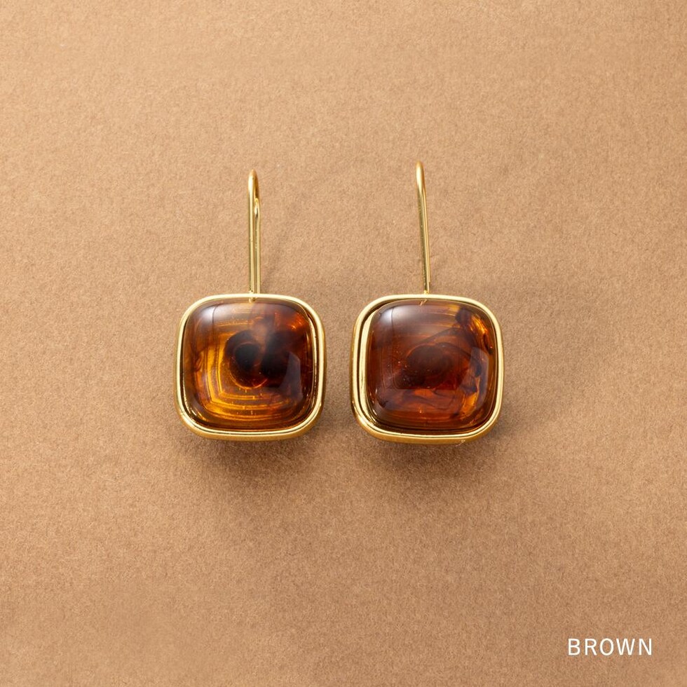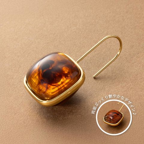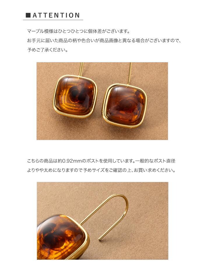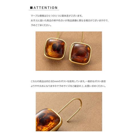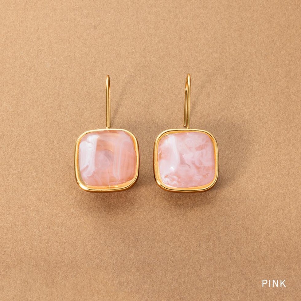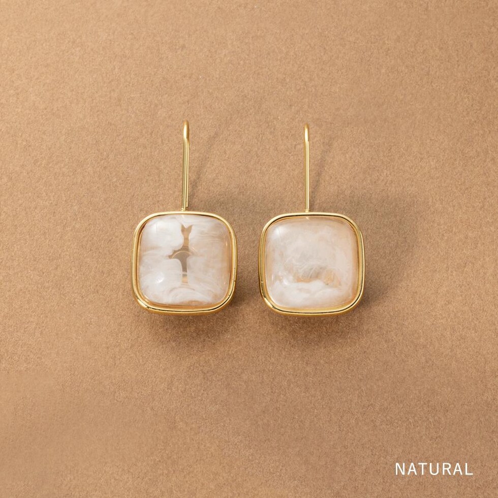ぷっくりとしたスクエアストーンの大ぶりフックピアス。ゴールドフレームとマーブル模様が存在感を放ちながらも、大人っぽい表情を演出します。コーデのアクセントにピッタリなデザイン◎