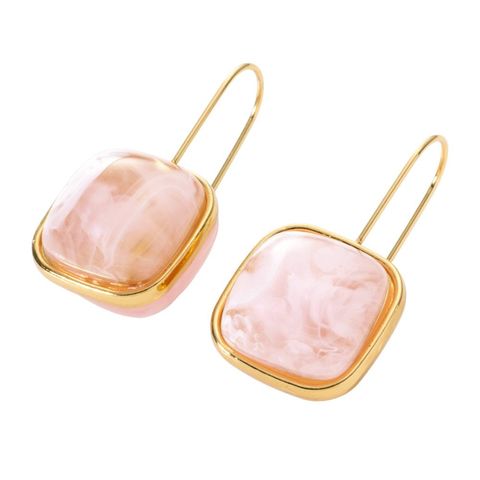 ピアス ステンレス 金属アレルギー サージカルステンレス レディース つけっぱなし フック マーブル スクエアストーン 四角 ぷっくり 大きめ フレーム cream dot ゆうパケット [ピンク_ピアス]