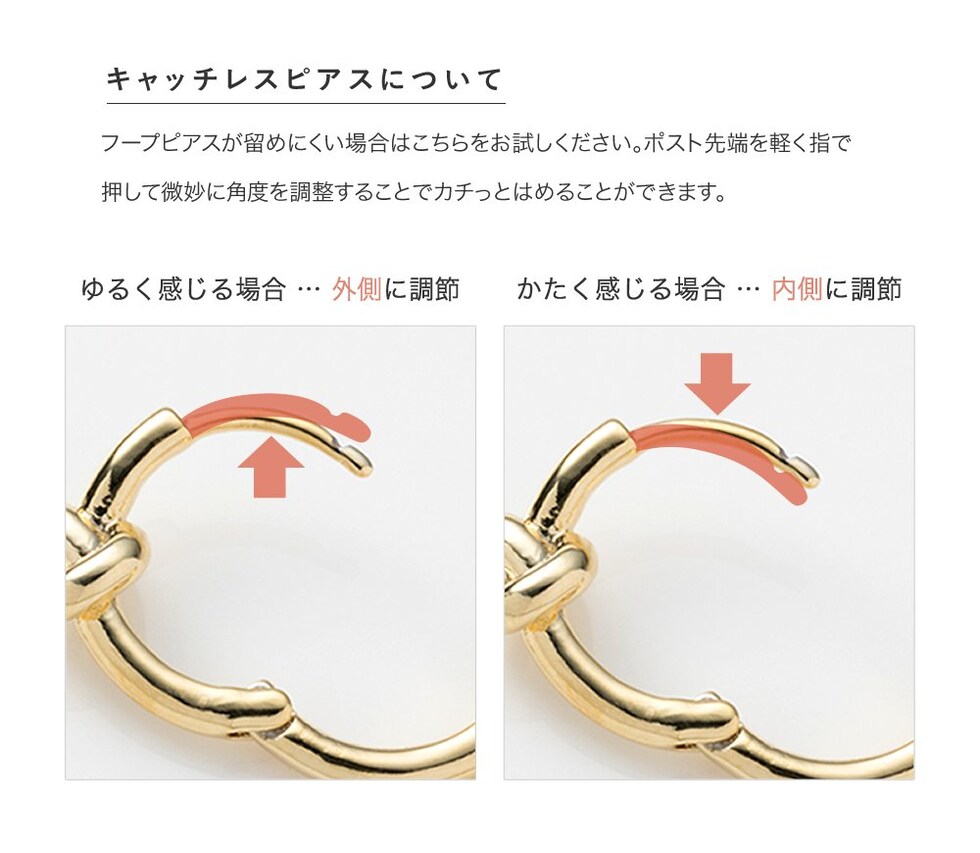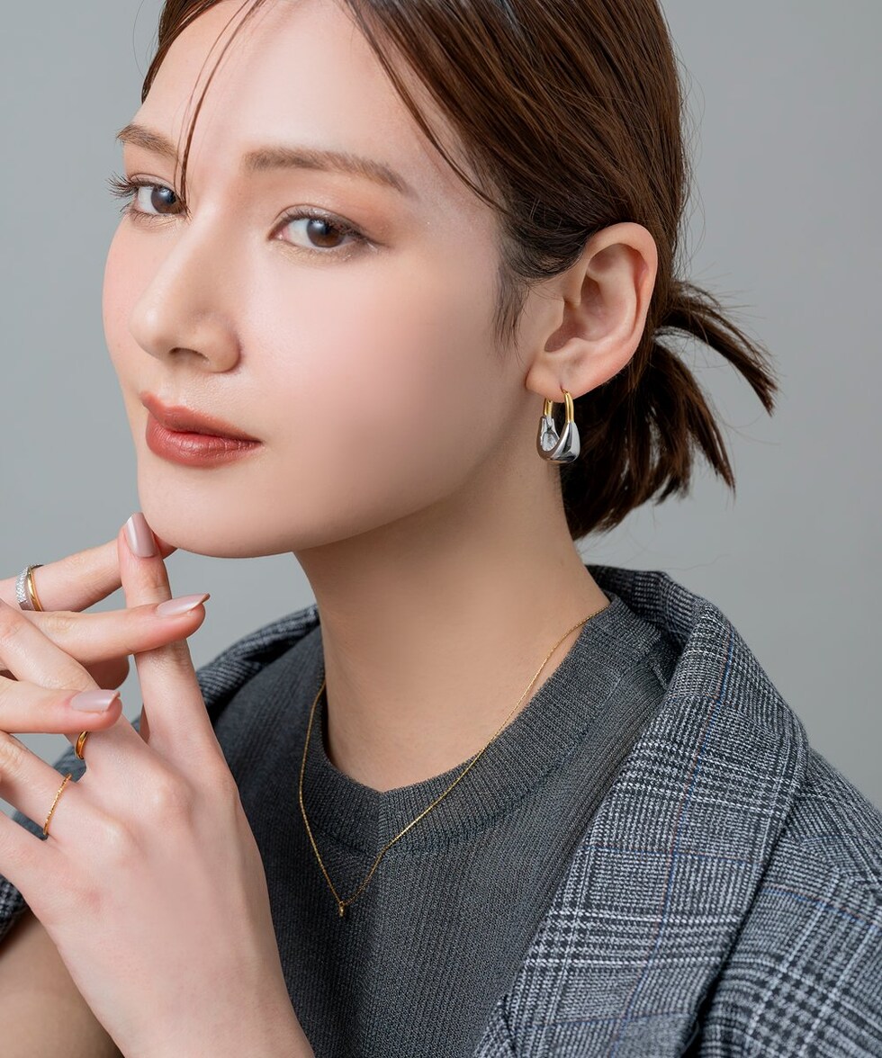 ワンタッチで着脱できる楽ちんなキャッチレスタイプは、忙しい朝にも最適◎引っ掛かりが少なく、落としにくいのも嬉しいポイント。見た目以上に軽やかな着け心地も魅力です♪