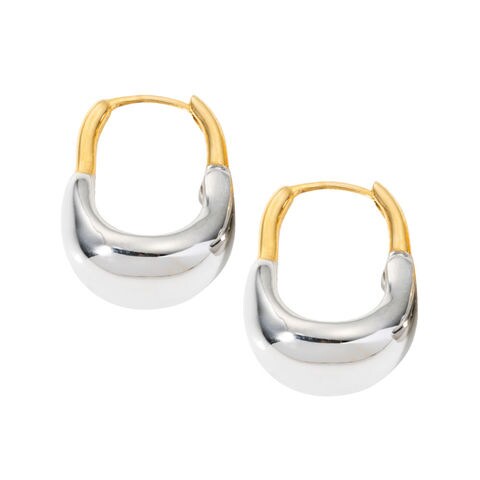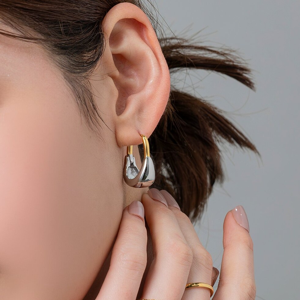 ゴールドの先にぷっくりとしたシルバーメタルが艶めくキャッチレスピアス。重厚感のあるフォルムがコーデをこなれた雰囲気に格上げします◎新鮮さをプラスするモードなデザインが目を惹くひと品。