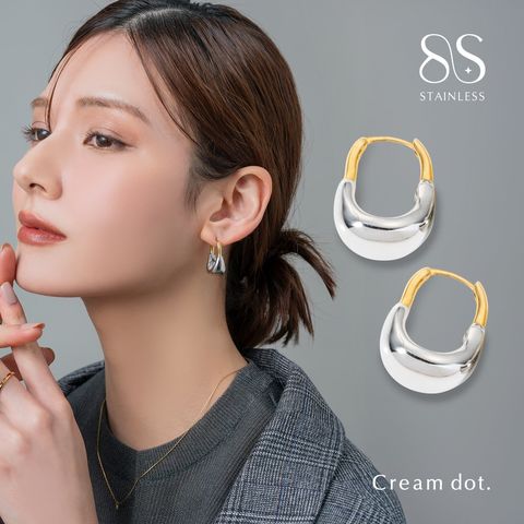 ピアス ステンレス 金属アレルギー サージカルステンレス レディース 金属アレルギー対応 つけっぱなし キャッチレス 中折れ 開閉式 ワンタッチ フープ ぷっくり メタル 軽量 cream dot ゆうパケット [ミックス_ピアス]