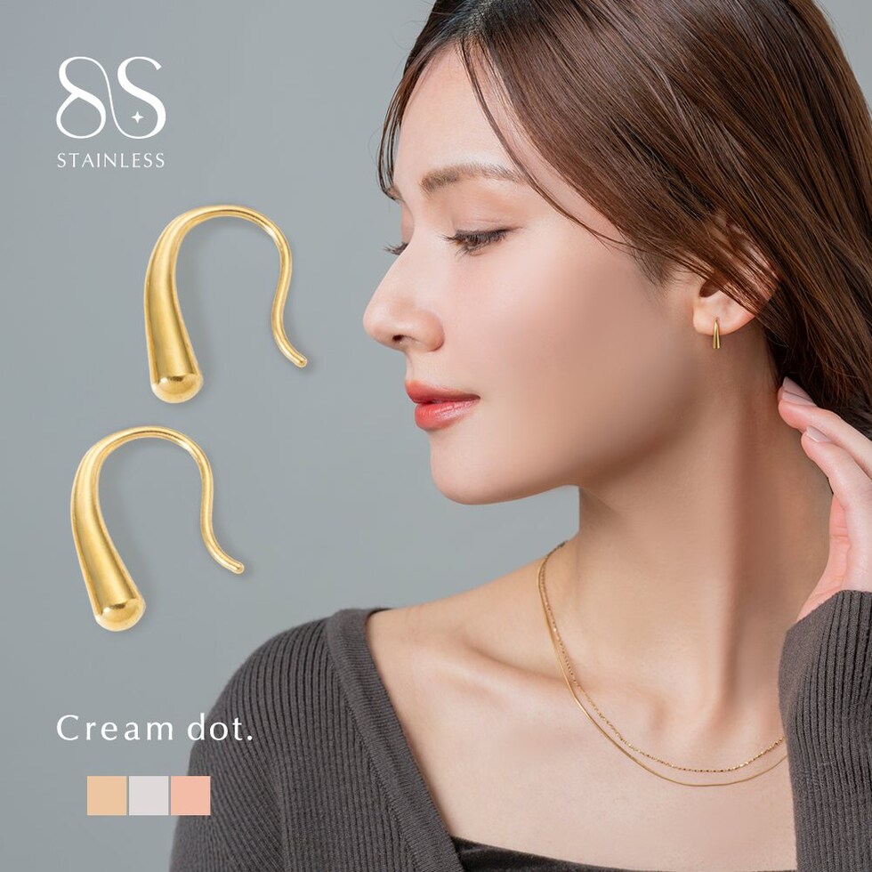 ピアス ステンレス 金属アレルギー サージカルステンレス レディース 金属アレルギー対応 つけっぱなし フックミニ ドロップ メタル ぷっくり 軽量 シリコンキャッチ付き cream dot ゆうパケット [ピンクゴールド_ピアス]