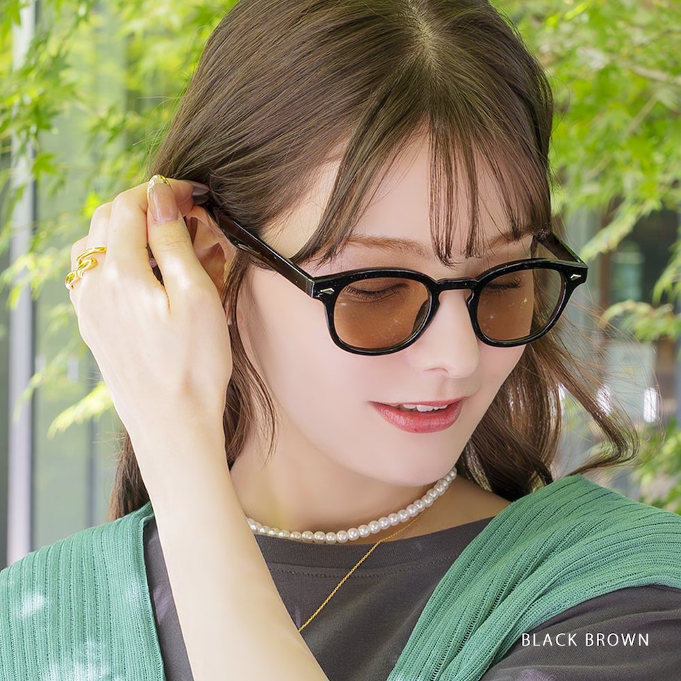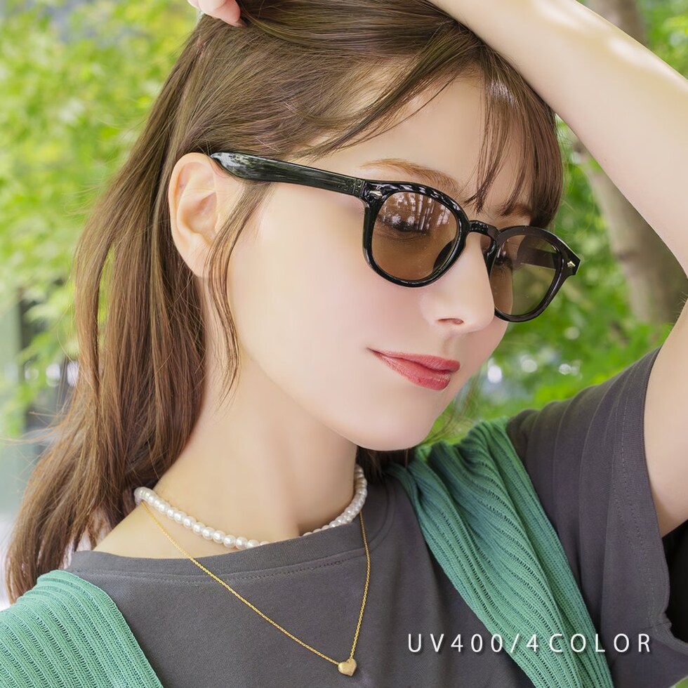 ボスリントンタイプのカラーサングラス。薄っすらと色めくライトカラーとちょっぴり太めに縁取るブラックフレームが、サラッとお顔の印象をお洒落感アップしてくれます。大人っぽく彩る4カラー展開で、きっとあなたに似合うを見つけられるはず◎