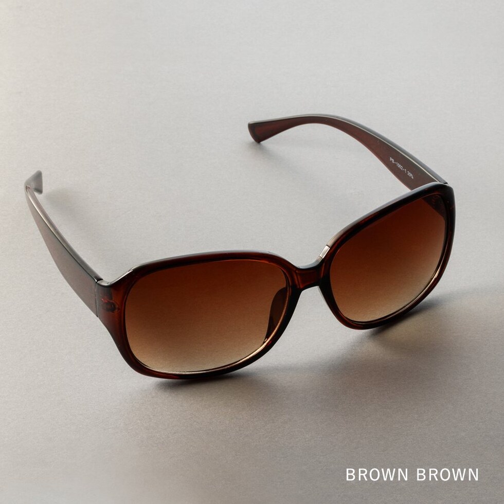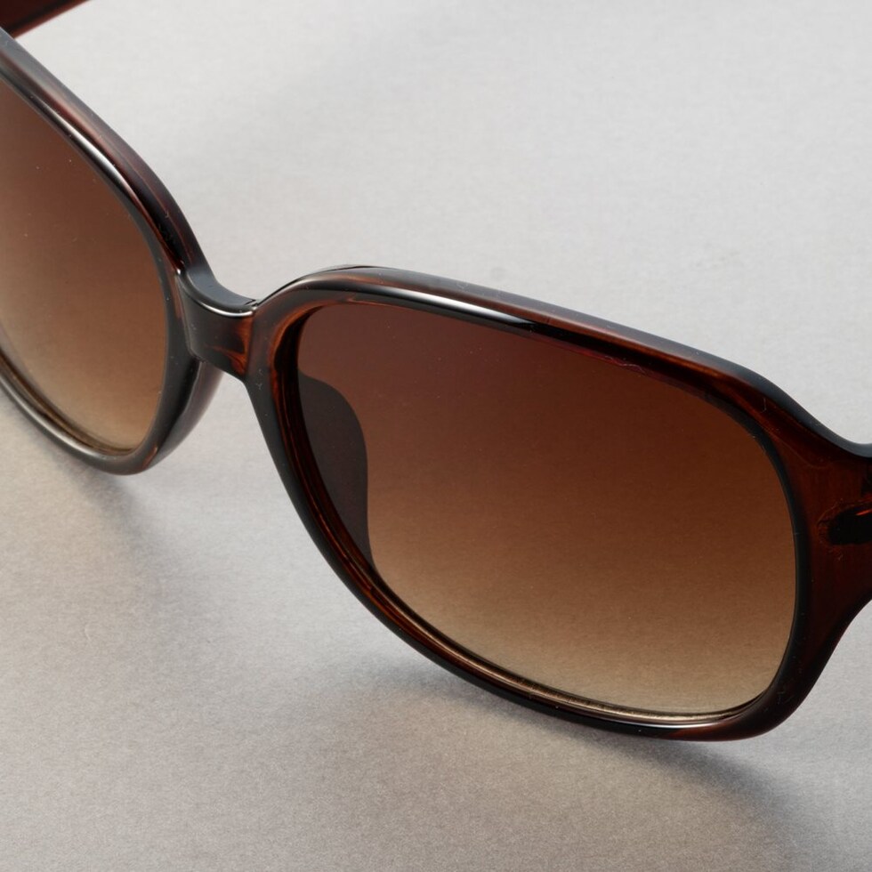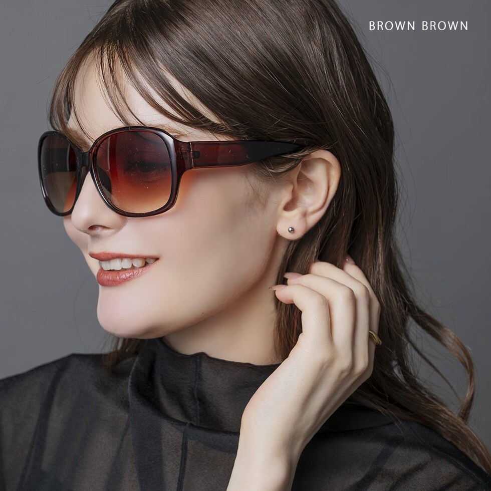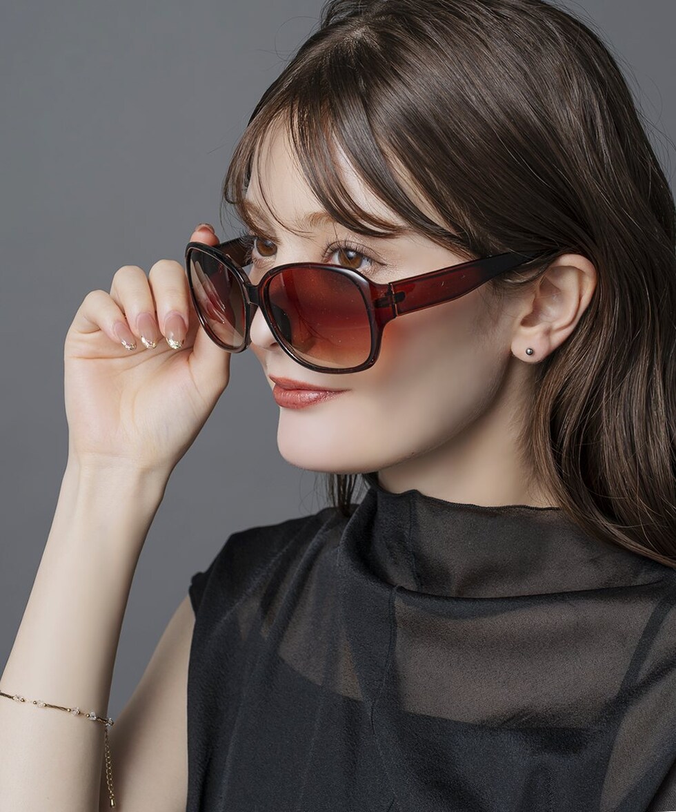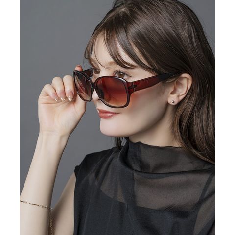 大きめスクエアタイプのサングラス。幅広テンプルと大きめシルエットが存在感バツグンで、お顔の印象を大人っぽくクールに仕上げてくれます。ほんのり暗めなシックカラーと程よいボリュームの縁取りでごつくなり過ぎず華奢見せも期待できちゃいそう◎