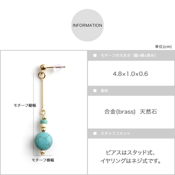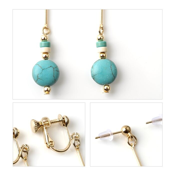 ピアス レディース ロング 天然石 バー アクセサリー 小物 ジュエリー cream dot ゆうパケット [ターコイズ_イヤリング]