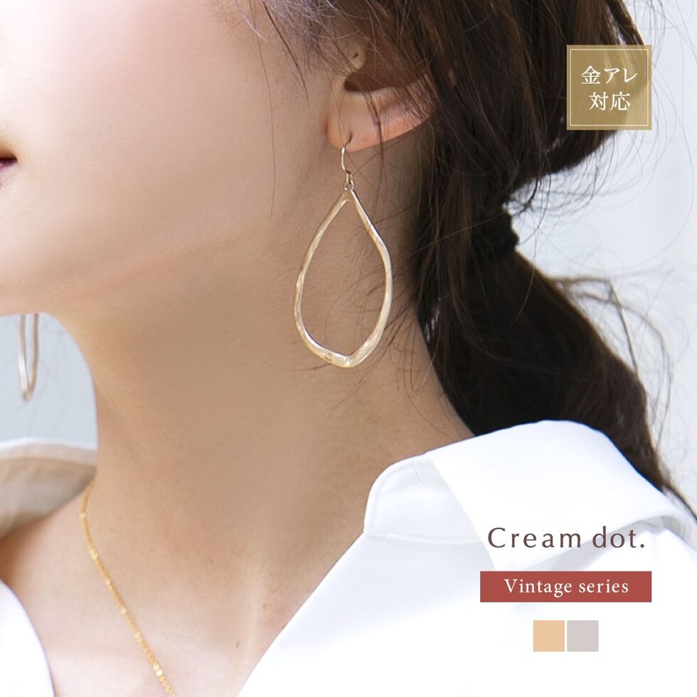 ピアス 金属アレルギー ニッケルフリー レディース フック 揺れる ドロップ ヴィンテージ調 ダメージ 加工 メタル アクセサリー cream dot ゆうパケット [ゴールド_ピアス]