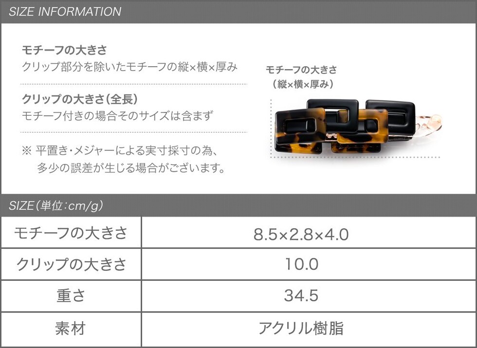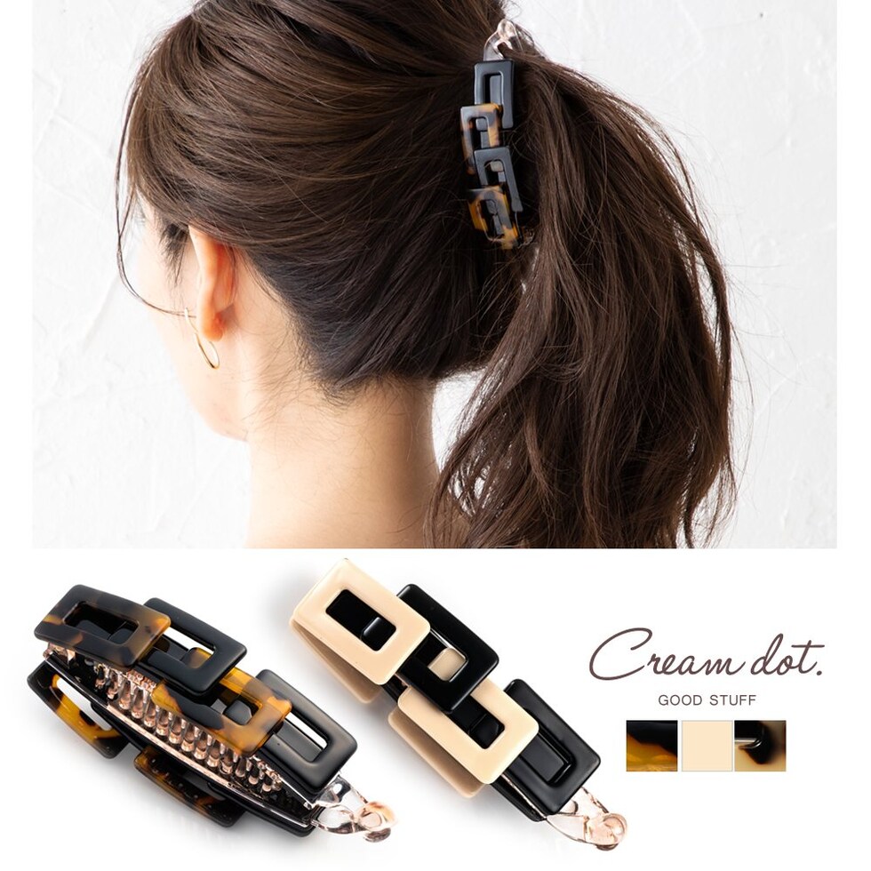 ヘアアクセサリー レディース バナナクリップ 大きめ しっかり留まる ヘアクリップ べっ甲風 べっこう風 マーブル スクエアパーツ 重なり ボリューム cream dot ゆうパケット [ベージュ_ワンサイズ]