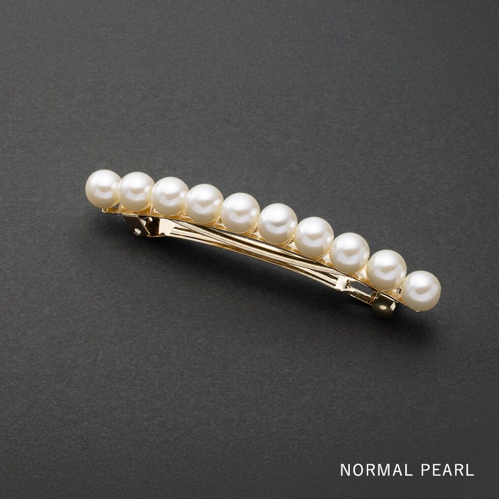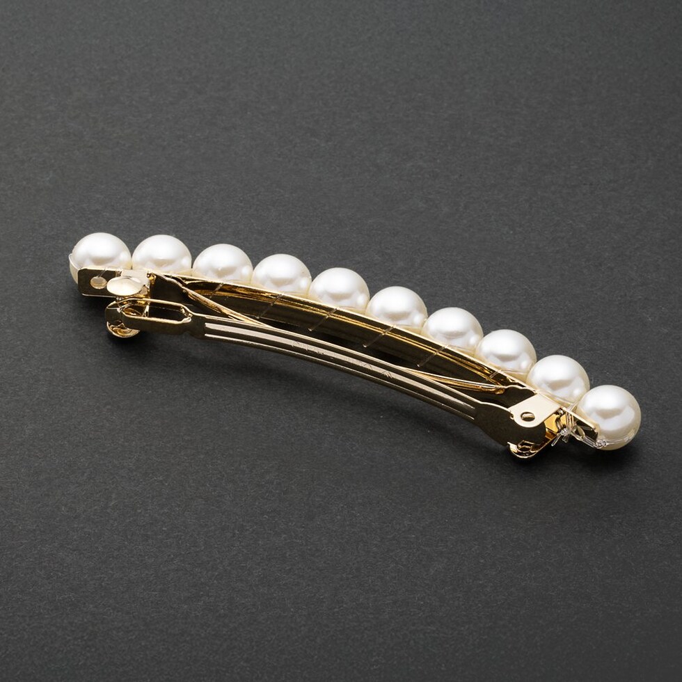 ヘアアクセサリー レディース バレッタ ヘアクリップ パール シュガーパール 2タイプ 細め スリム 髪留め まとめ髪 cream dot ゆうパケット [ノーマルパール×ゴールド_ワンサイズ]