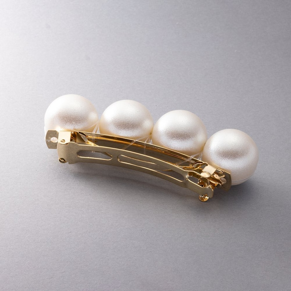 ヘアアクセサリー レディース バレッタ ヘアクリップ パール シュガーパール 2タイプ ビッグパール 大粒 4連パール ボリューム 存在感 髪留め まとめ髪 cream dot ゆうパケット [ノーマルパール×ゴールド_ワンサイズ]