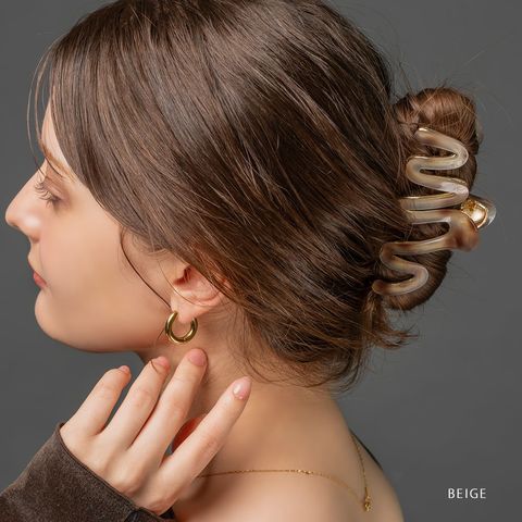 波型ラインが優美でおしゃれなバンスクリップ。落ち着いたカラーと個性的なマーブル模様が大人っぽい印象に◎さっとまとめたヘアもぱっと華やか&こなれた雰囲気にアップデートしてくれます。大きめサイズでホールド力も抜群です。