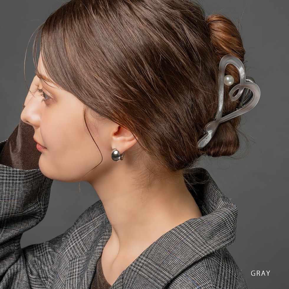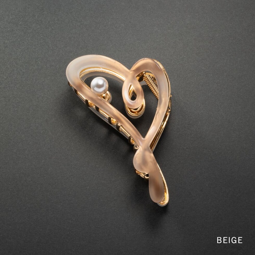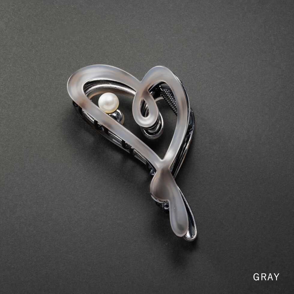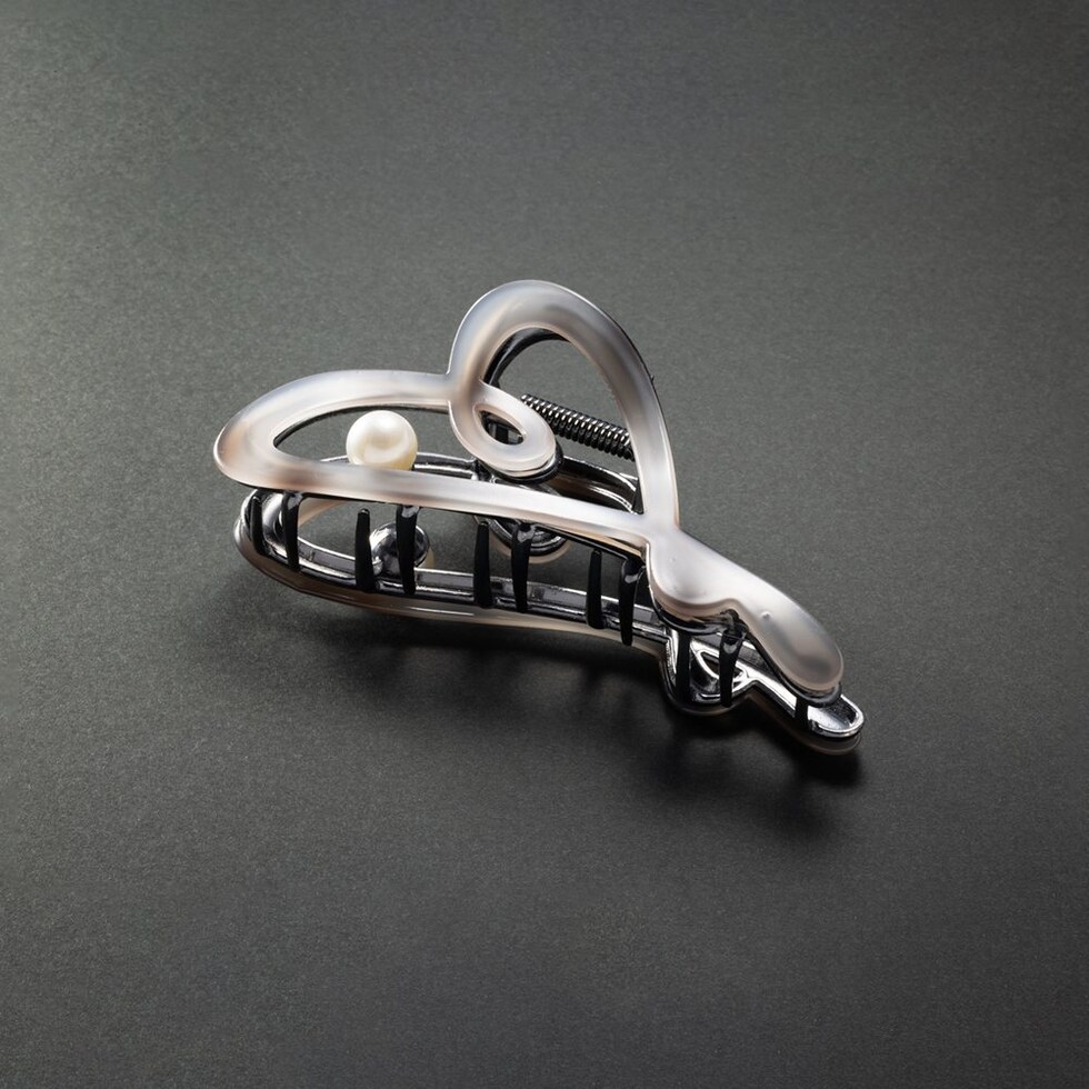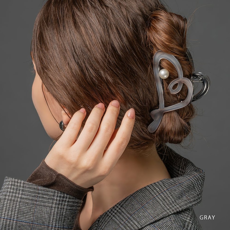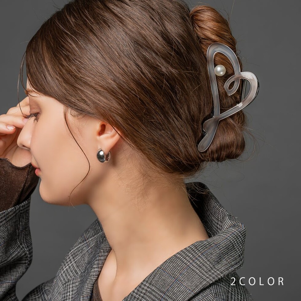 ラフに描いたようなハートモチーフが可愛いバンスクリップ。大人っぽく高見えするマーブル模様にパールのアクセントが◎甘くなり過ぎない大人の女性のためのイチオシヘアアイテム。使いやすいサイズ感で、まとめ髪にサッと挟むだけでこなれヘアが完成します。