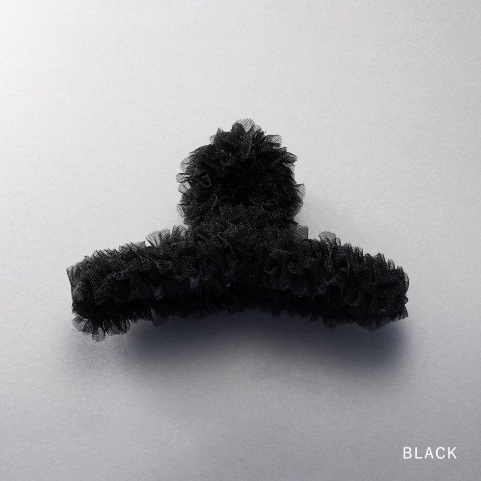 ヘアアクセサリー レディース バンスクリップ ヘアクリップ チュール フリル ボリューム 大きめ ループデザイン 毛量 多い 挟むだけ 簡単 髪留め まとめ髪 cream dot 定形外郵便 [ブラック_ワンサイズ]