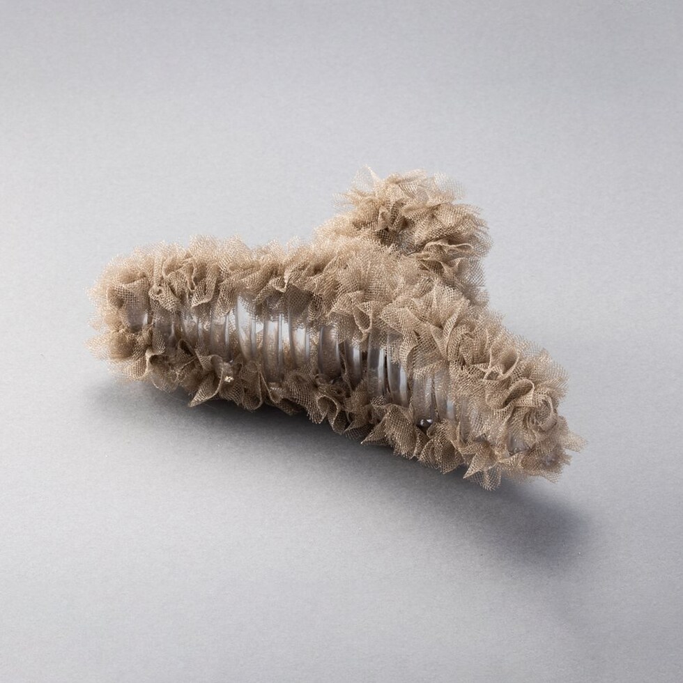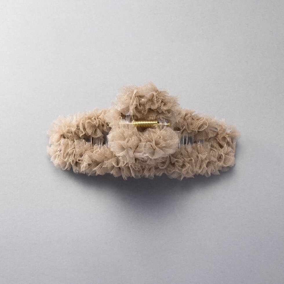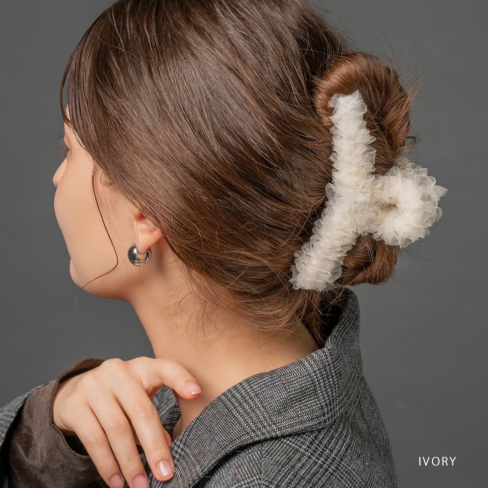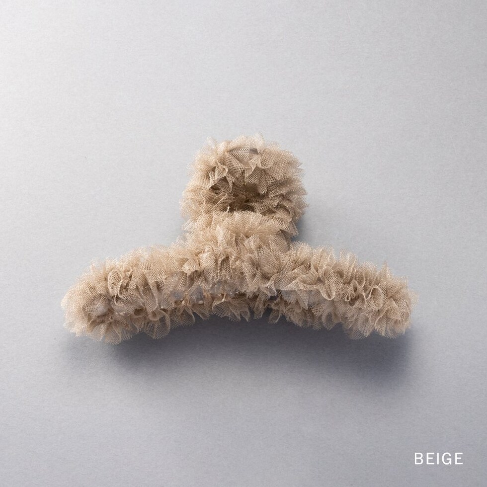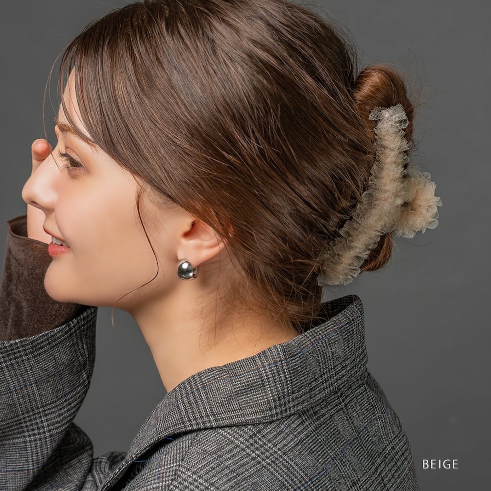 繊細でふんわりとしたシルエットが大人可愛いチュールフリルのバンスクリップ 。ほんのり甘めなデザインでもコーデに馴染むカラーが大人の女性にも◎いつものヘアスタイルにサッと留めるだけで簡単におしゃれに仕上げてくれます。