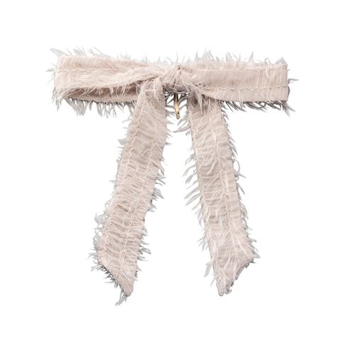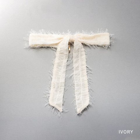 ボリューミーなシャギーフリンジのリボンポニーフック。上品で華やかなデザインだから、コーデのアクセントやオケージョンシーンにオススメ◎緩く流れるシルエットで大人っぽく着用できます。結び目に差し込むだけで、後ろ姿をこなれた雰囲気に導くアイテムです。