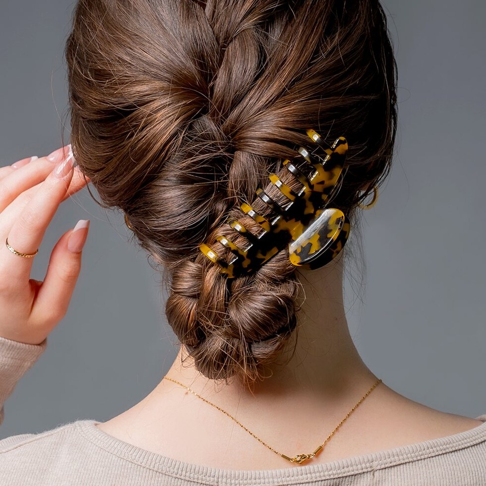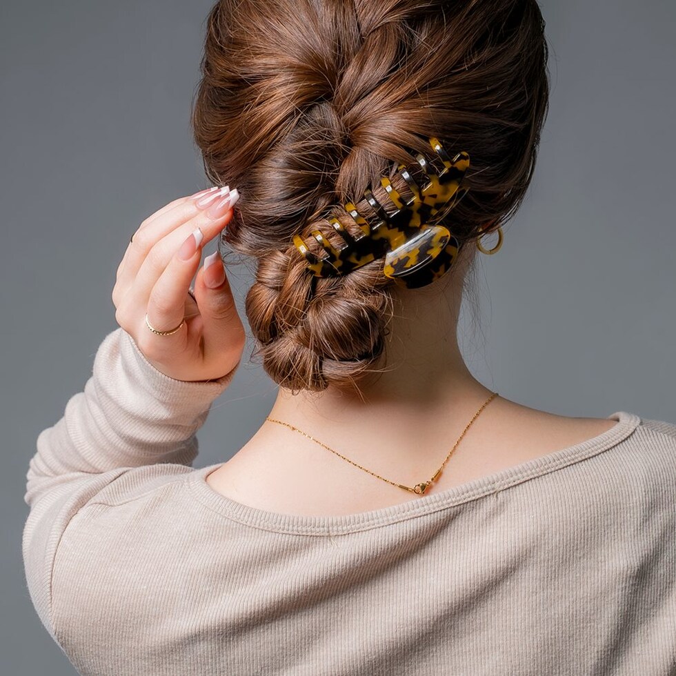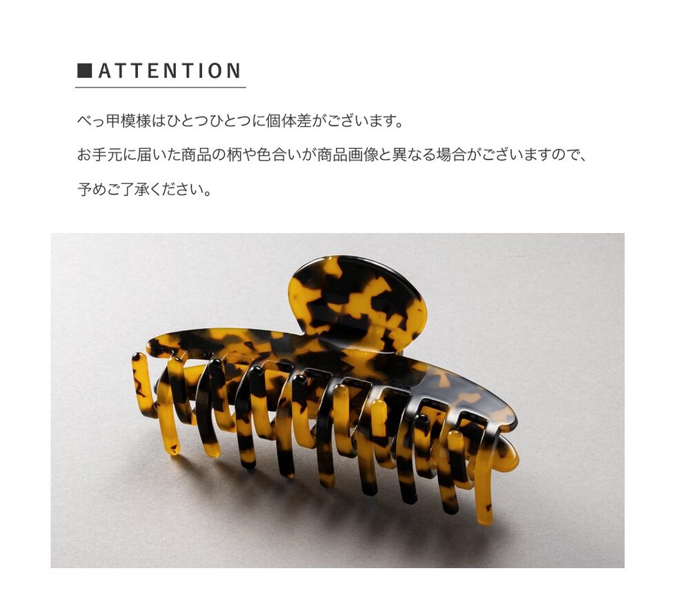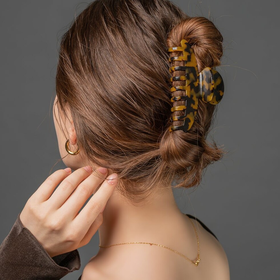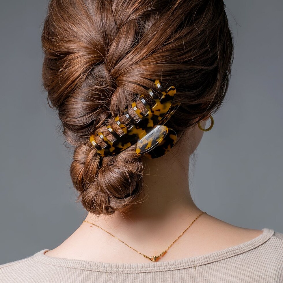 べっ甲風の艶やかな光沢と色合いが個性的なバンスクリップ。華やかなべっ甲風デザインが、女性の魅力を引き立たせてくれます。ラフなまとめ髪やハーフアップに挟むだけでこなれたヘアアレンジが即完成◎
