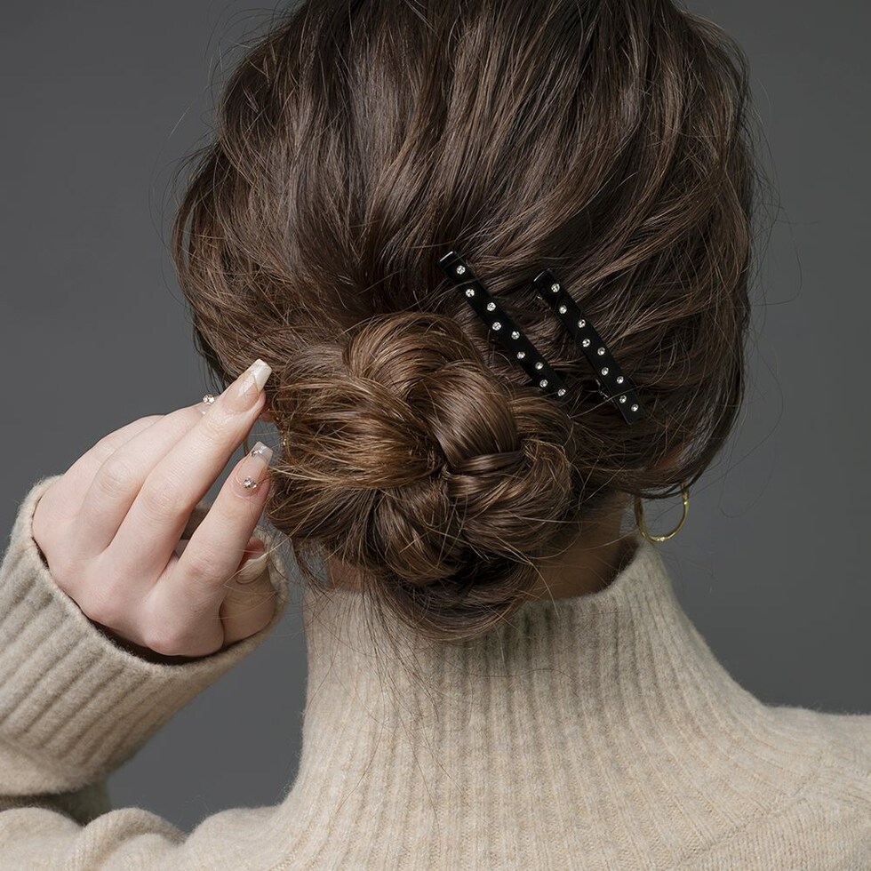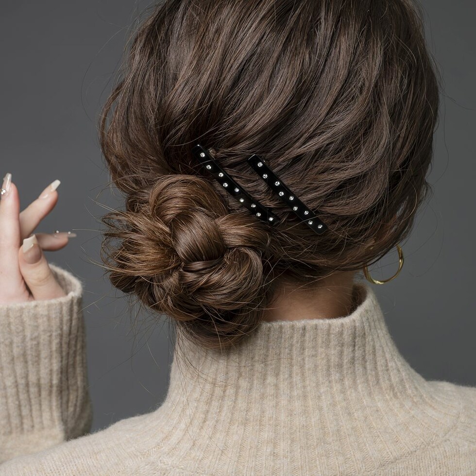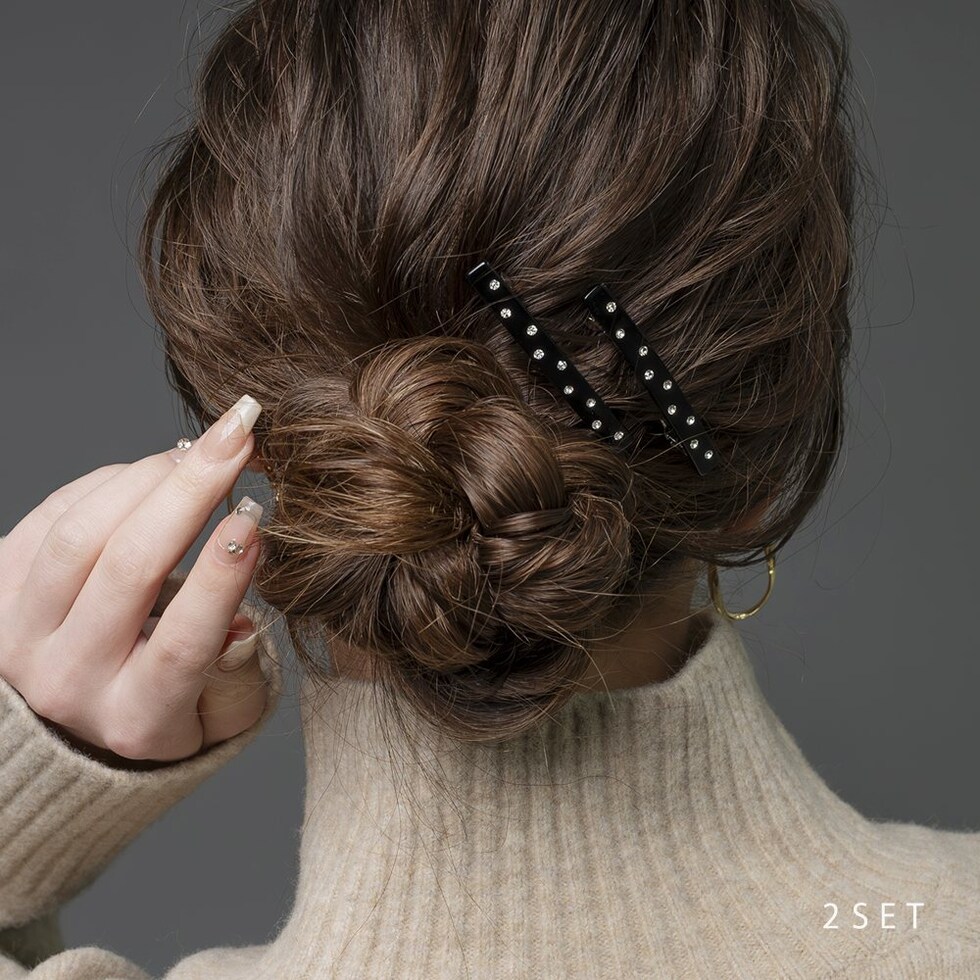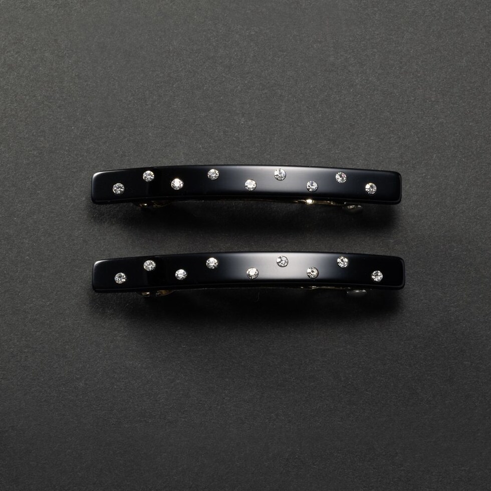 ビジュードットが可愛いブラックプレートの2セットヘアバレッタ。緩やかにカーブしたシンプルなプレート&さりげないサイズ感のビジューで品よく仕上げたアイテムです◎単品はもちろん2つを重ね着けしてもgood。