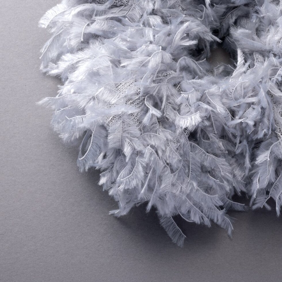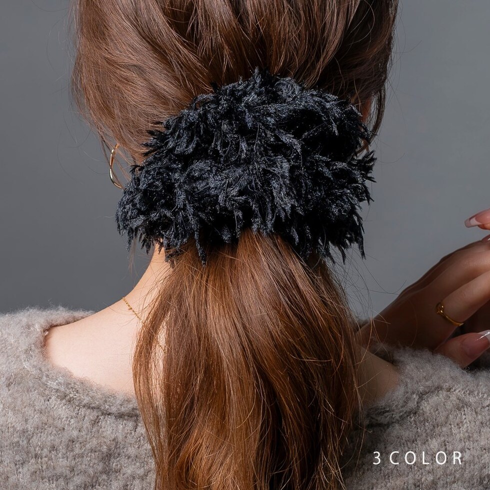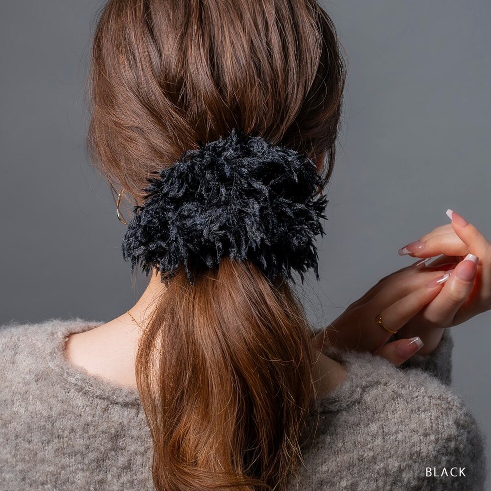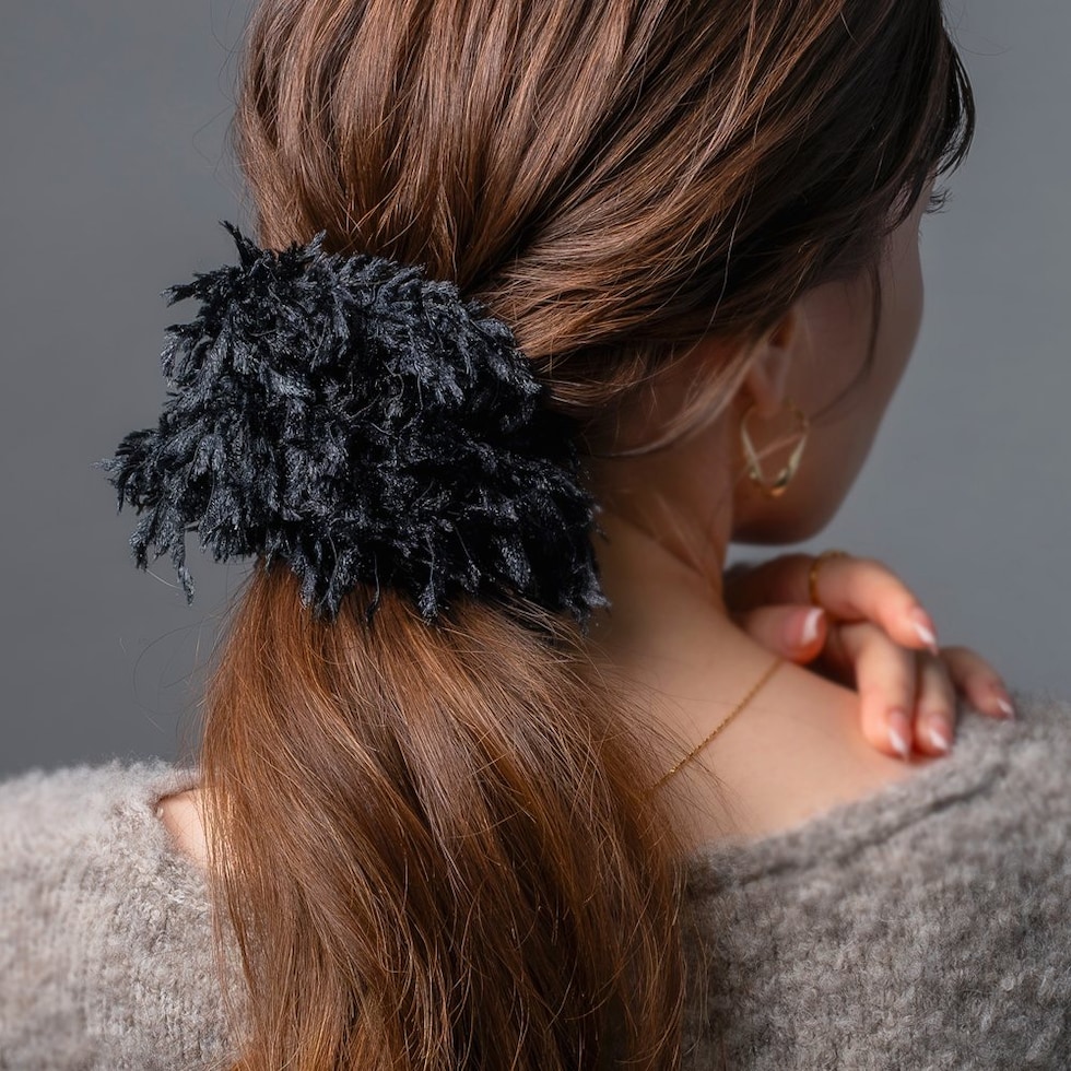 羽根のような質感、フェザー生地のシュシュ。高見えする素材感で可愛らしくなりすぎず、大人ヘアにぴったりなアイテム。存在感もありつつ、後ろ姿に女性らしい柔らかなアクセントを添えてくれます。さっと結ぶだけで目を惹くアレンジが完成します◎