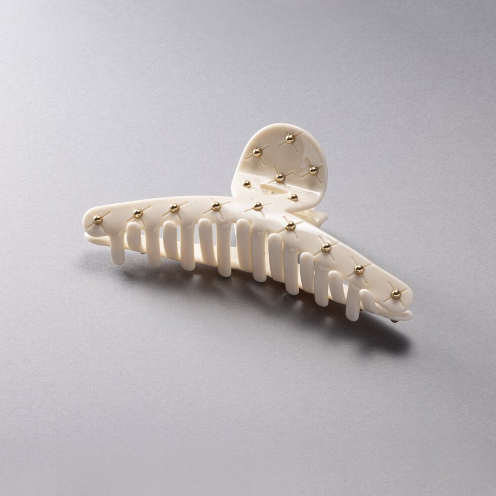 ヘアアクセサリー レディース バンスクリップ ヘアクリップ ドット メタル スタッズ キルティング 大きめ ボリューム 挟むだけ 簡単 しっかり留まる 多毛 髪留め まとめ髪 cream dot 定形外郵便 [アイボリー_ワンサイズ]