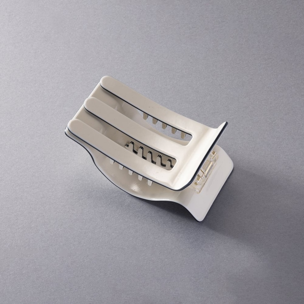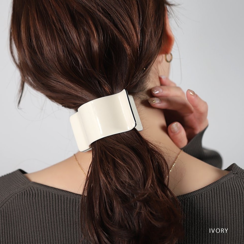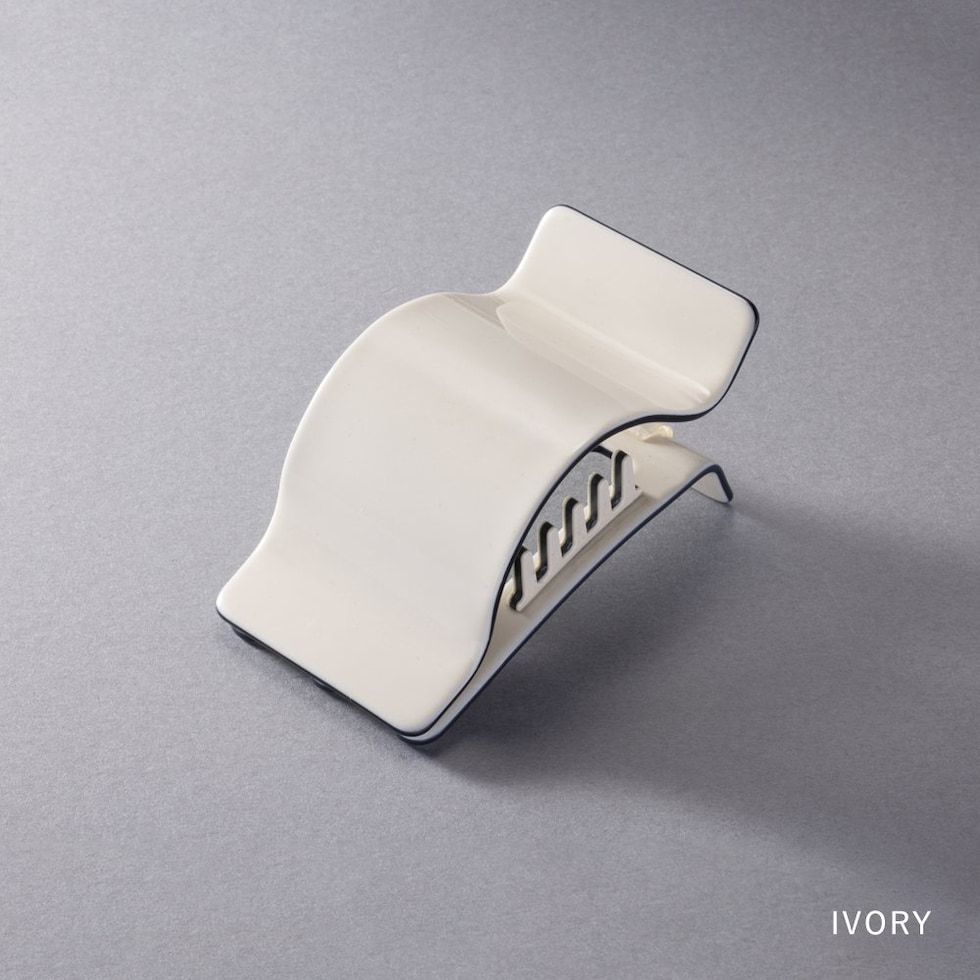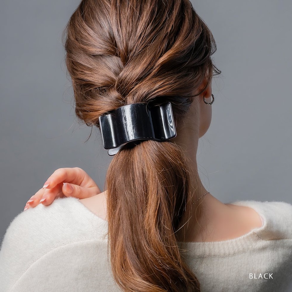 バイカラーデザインがさりげなくおしゃれなカーブラインのヘアクリップ。結んだ髪にもハーフアップにもつけられる大きめサイズ感です。クリップならではの留めやすさで、簡単にヘアアレンジが楽しめるのがポイント◎