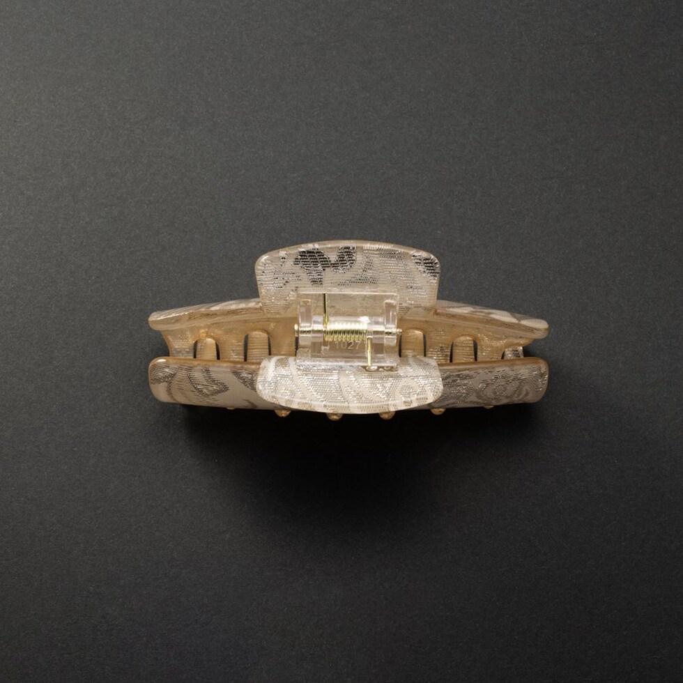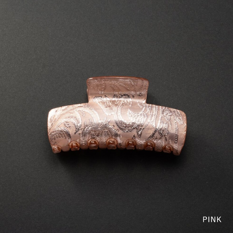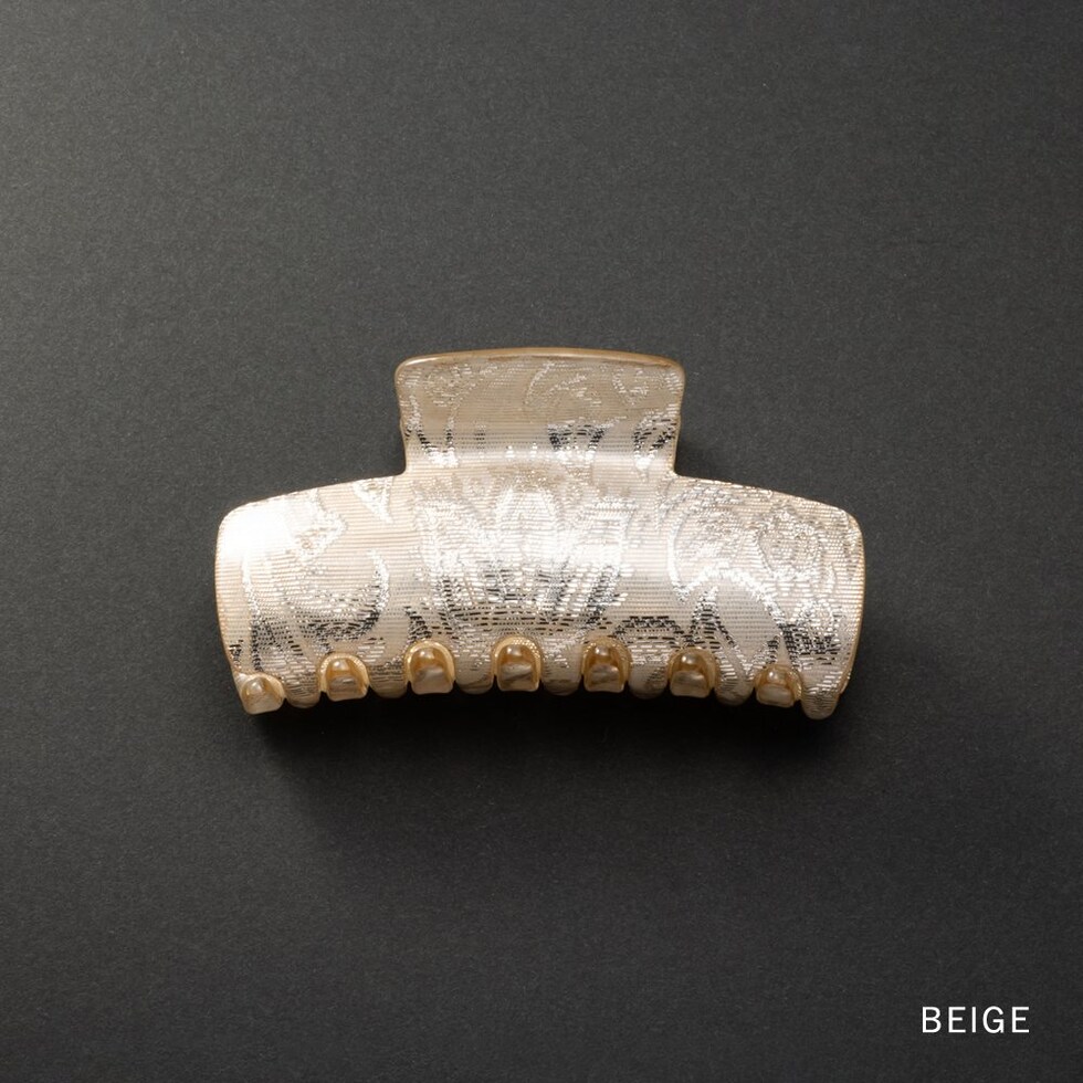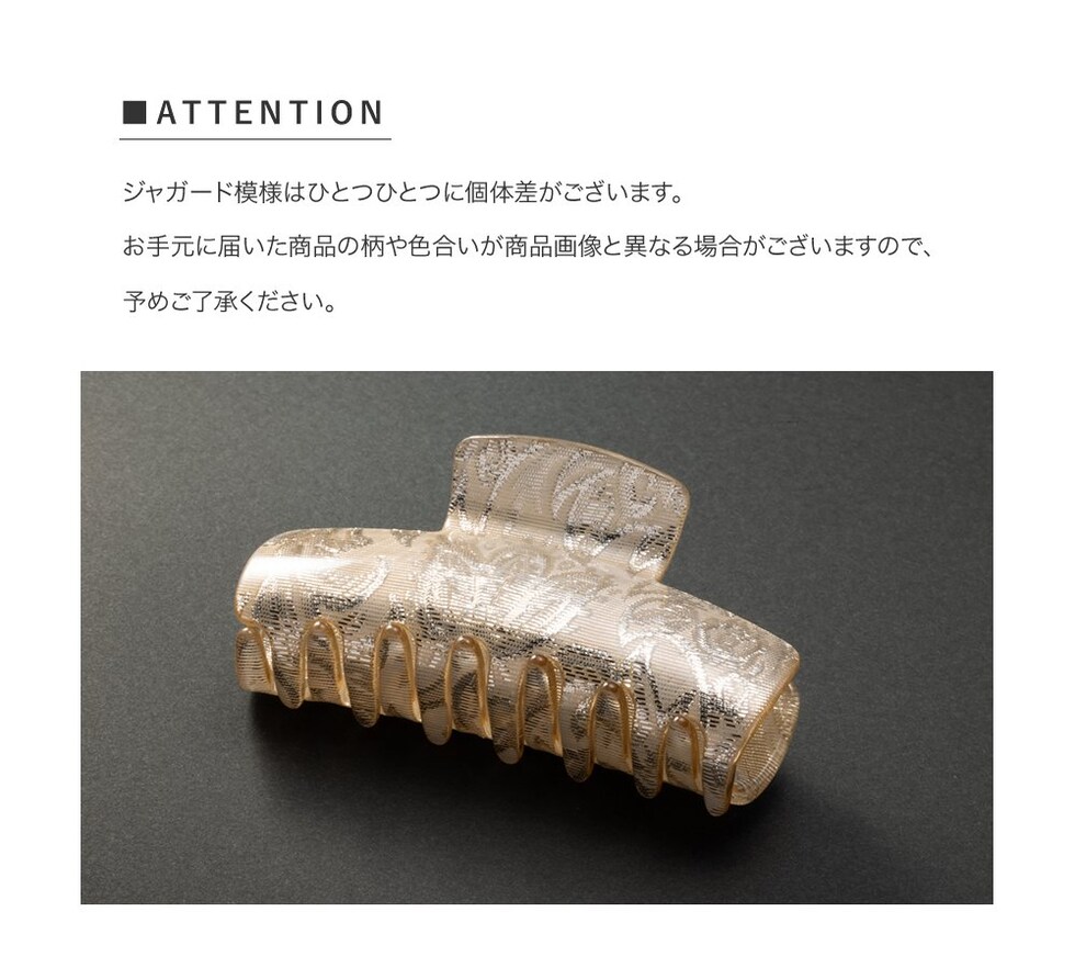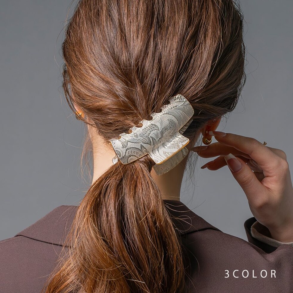 個性的で美しいジャガード模様のバンスクリップ 。コーデに馴染むカラーリングとジャガード模様が上品さと華やかさを演出◎ラフなまとめ髪にさっと挟むだけでこなれたアクセントを添えてくれます。