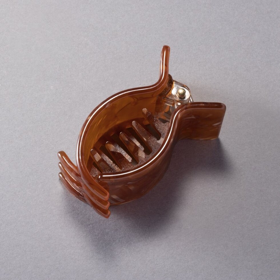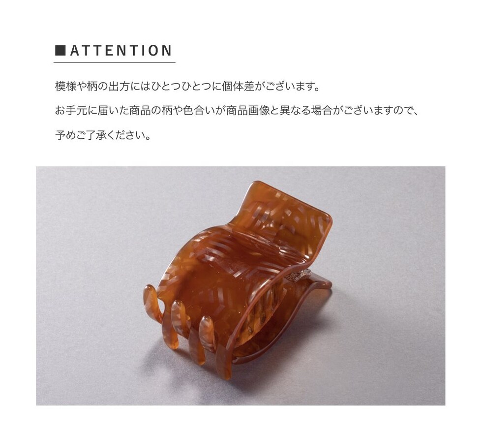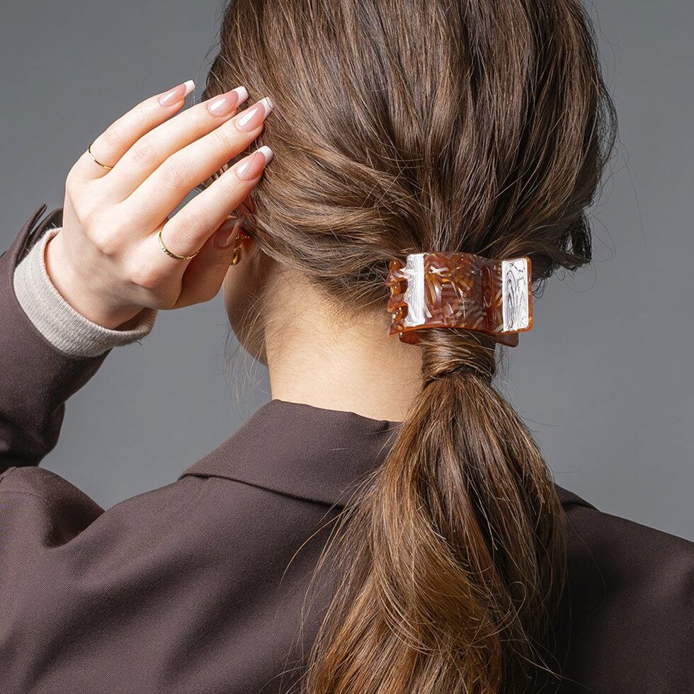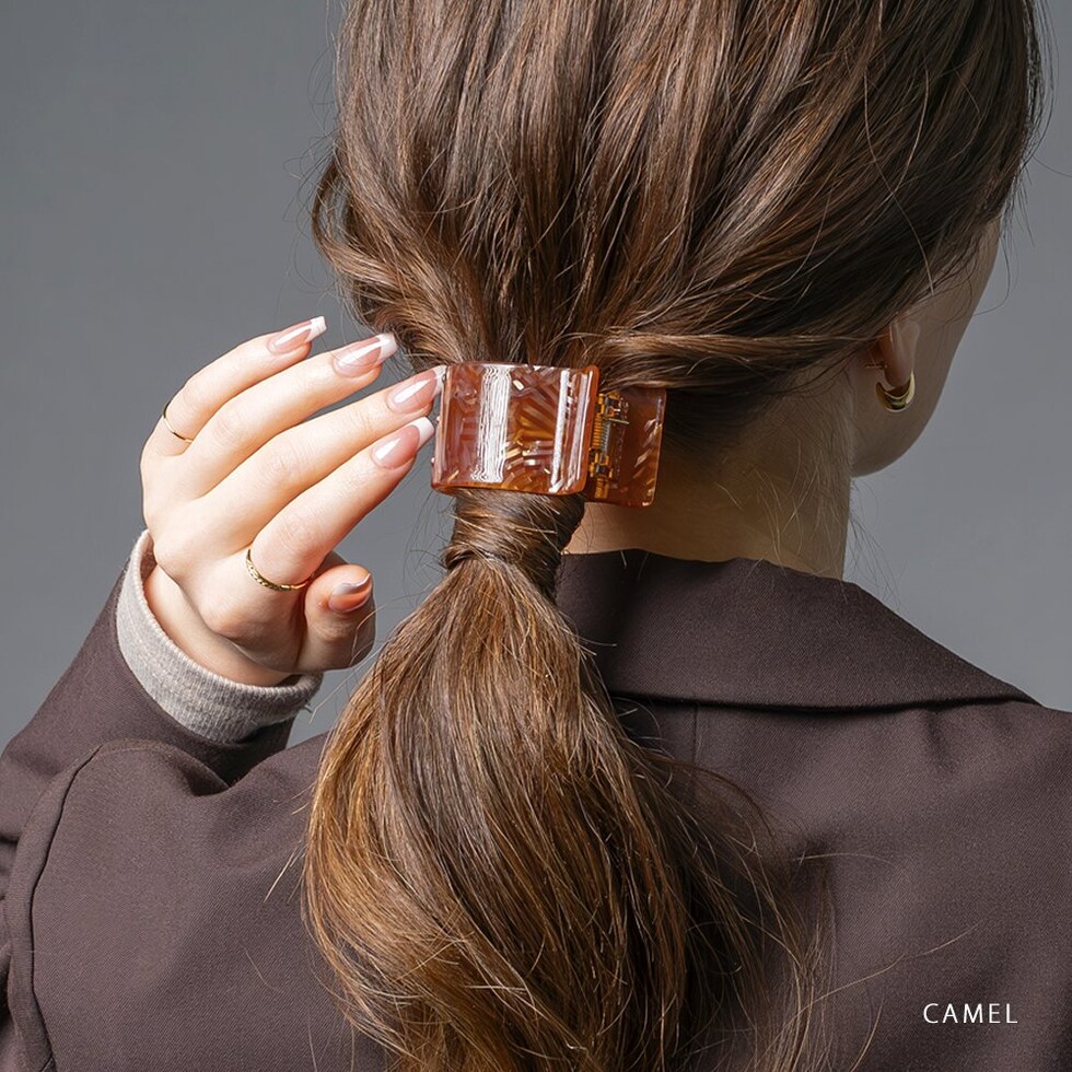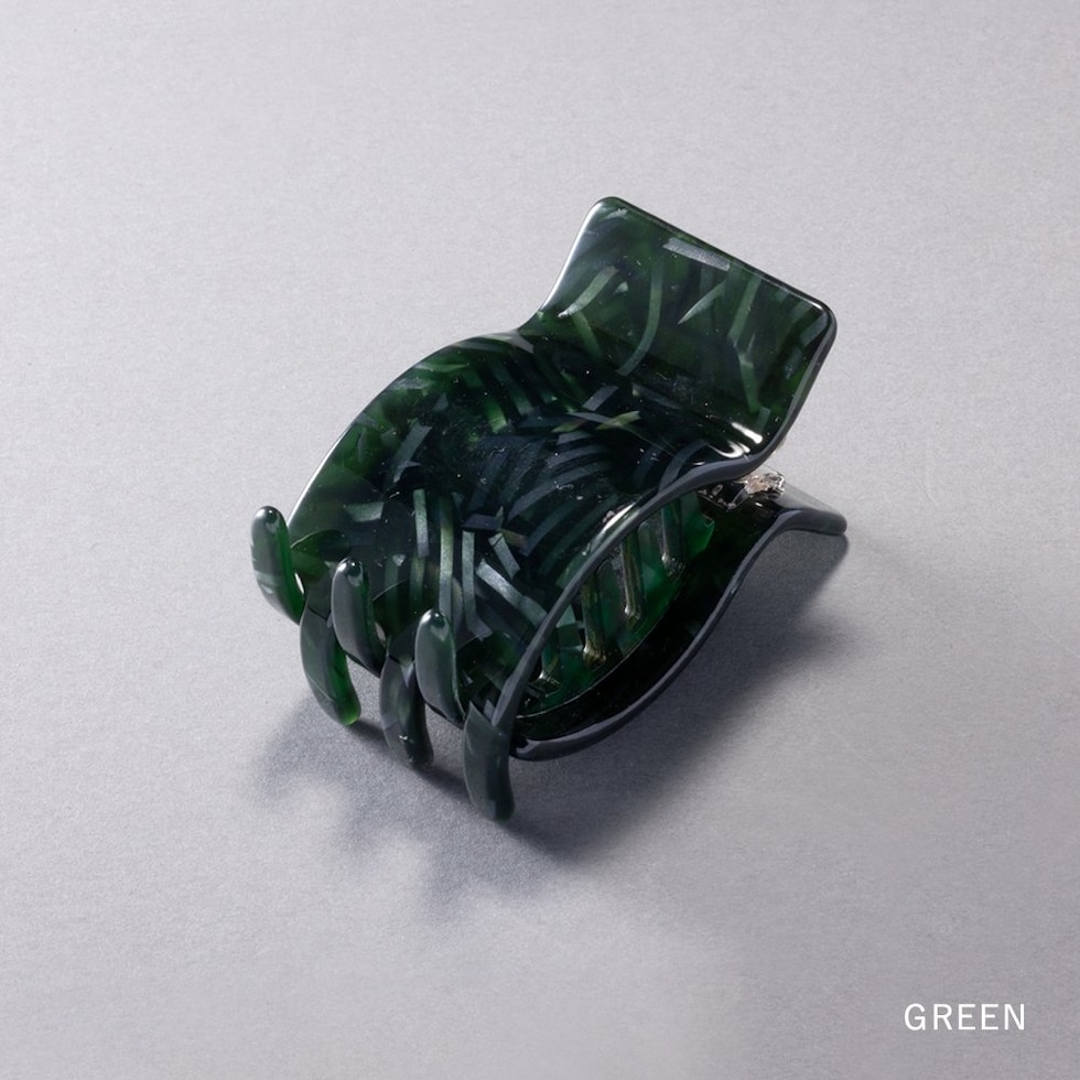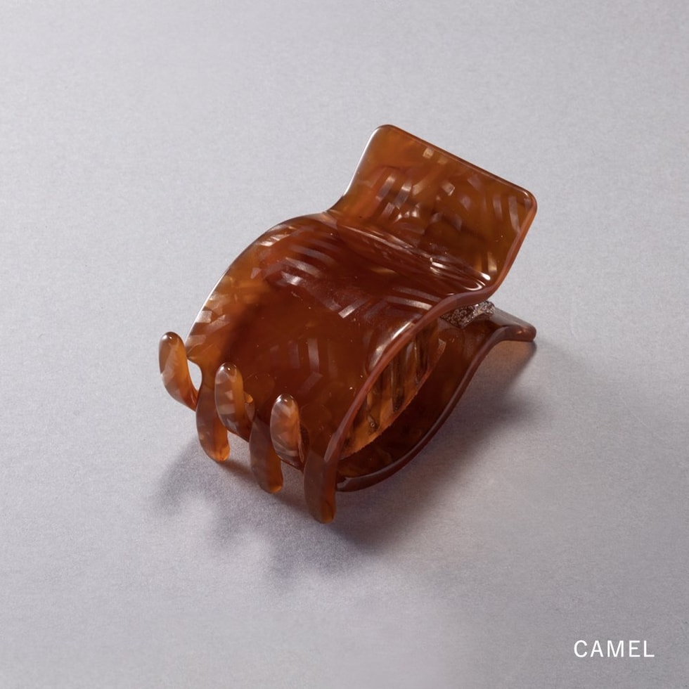 艶やかな質感と個性的なストライプ模様が目を惹くヘアクリップ。大人っぽいカラーでアンニュイな雰囲気を演出します。まとめ髪を挟み込むだけでヘアスタイルが完成するオススメのアイテム。
