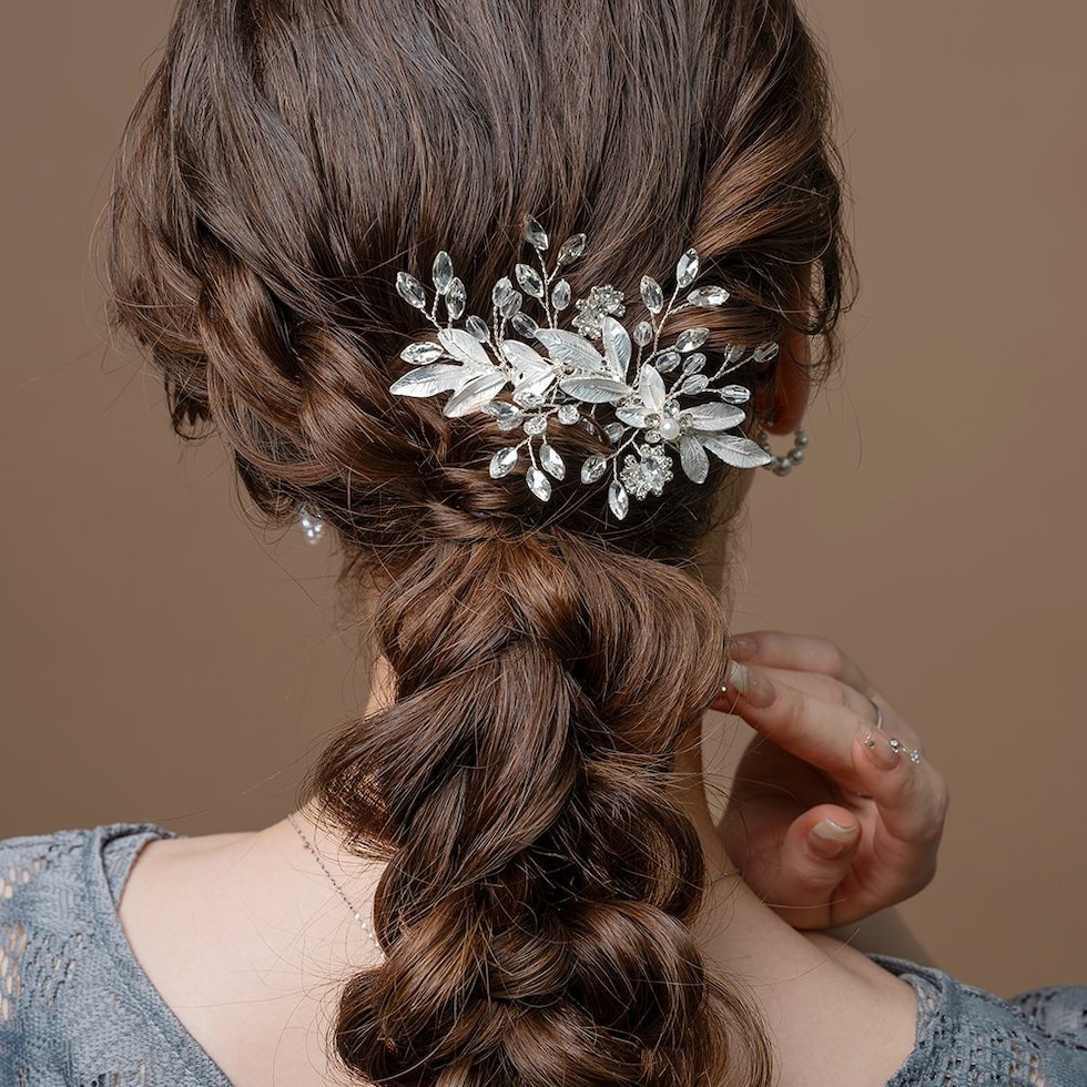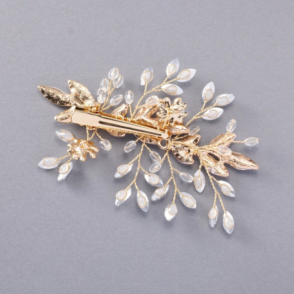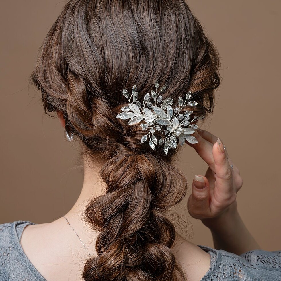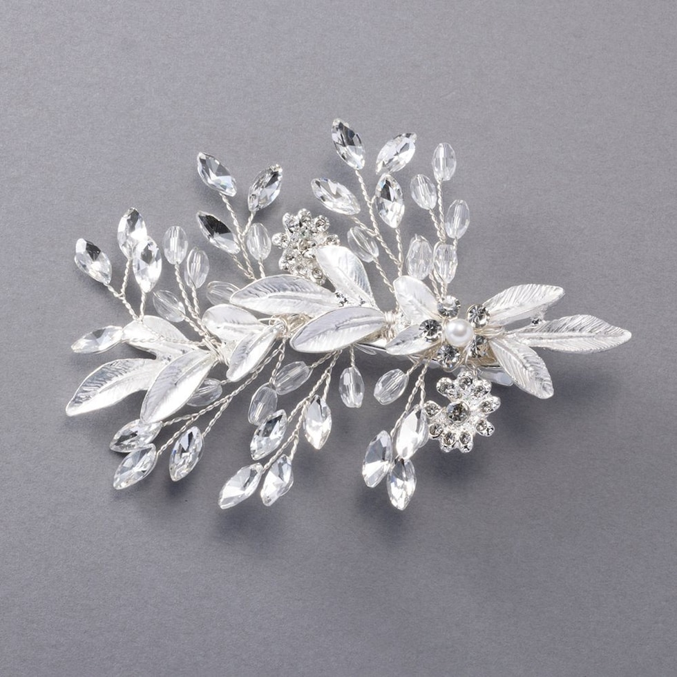 存在感を放つデコラティブなボタニカルモチーフのヘアクリップ。マーキスカットビジューやリーフモチーフメタルなど、繊細なデザインと煌めくモチーフが女性らしい華やかな印象を演出します。ヘアアレンジを即エレガントに仕上げる、お呼ばれシーンにぴったりなアイテムです。