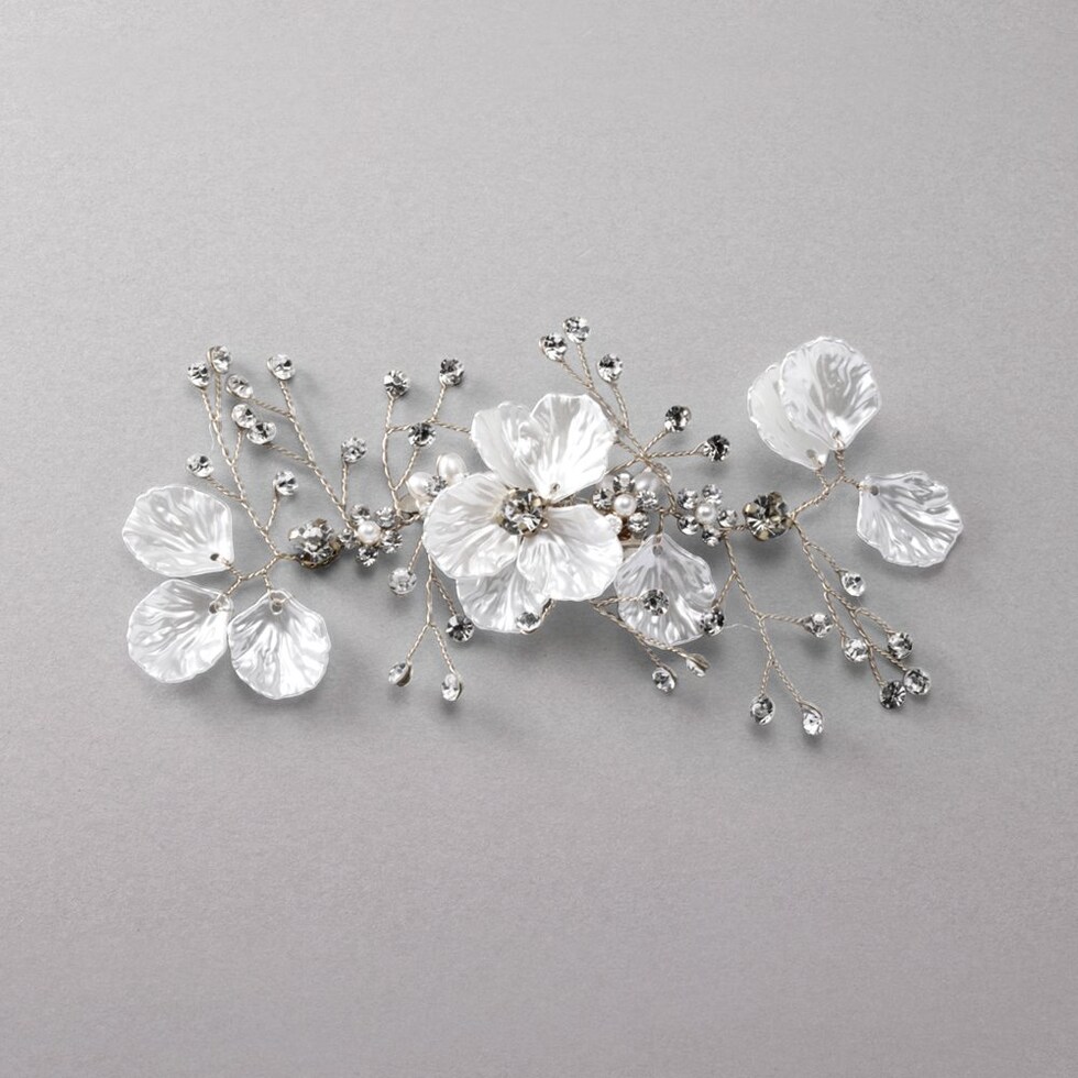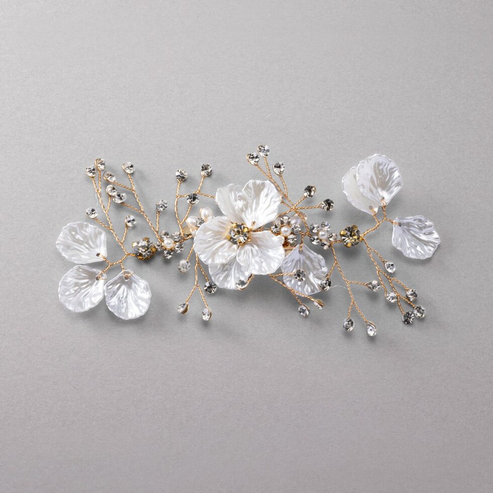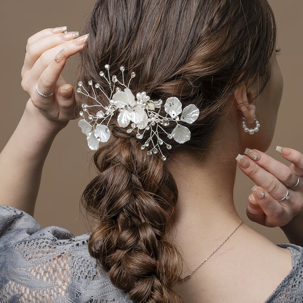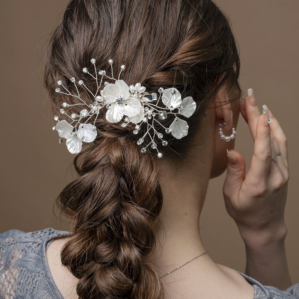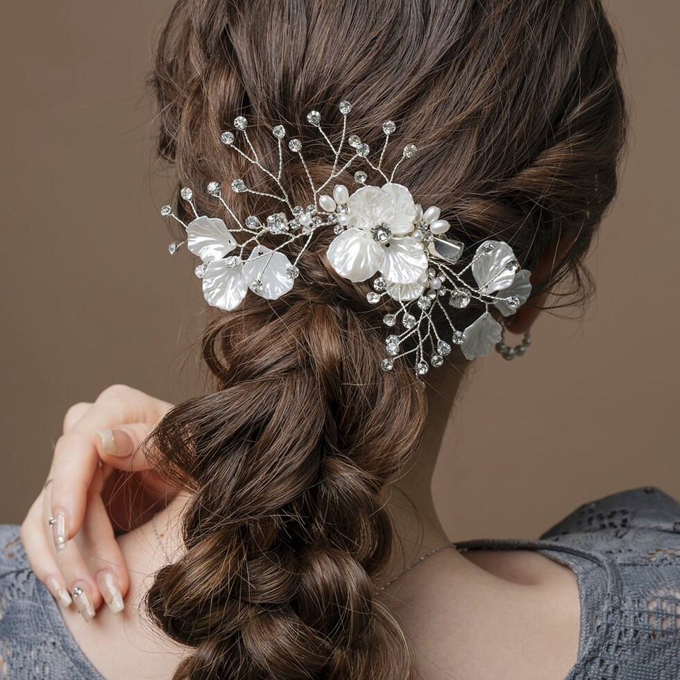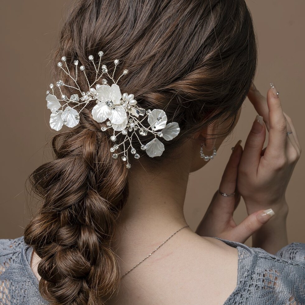 ヘアスタイルをパッと華やかにするお呼ばれヘアクリップ。様々なフラワーモチーフを贅沢にあしらったデコラクティブで繊細なデザインが後ろ姿を華やかにドレスアップ。結婚式やパーティーなどのオケージョンシーンに大活躍しそう◎