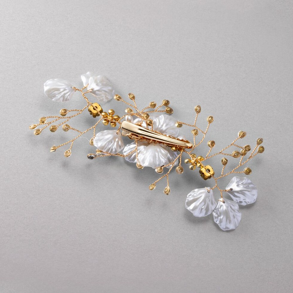ヘアアクセサリー レディース ヘアクリップ フラワー ビジュー パール 小枝 髪留め まとめ髪 髪飾り 花飾り ゲスト cream dot ゆうパケット [ゴールド_ワンサイズ]