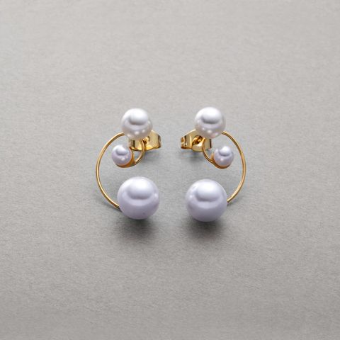 ピアス 金属アレルギー ニッケルフリー レディース パール ドローイングライン 変形 スタッド cream dot ゆうパケット [ゴールド_ピアス]