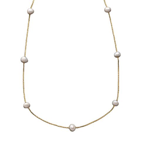天然素材の淡水パールを使用したステーションネックレス。繊細チェーンにスムーズにつながる淡水パールが華奢ながらも存在感のある逸品。ステーションデザインが上品かつ知的な印象で、デコルテをより女性らしく美しくアピール◎パールの似合う時季にマストなアイテムです。