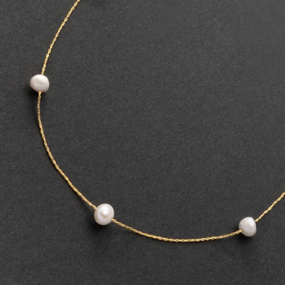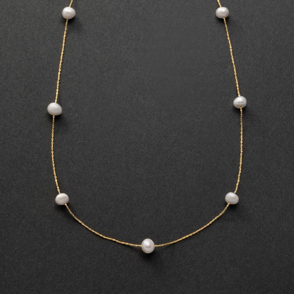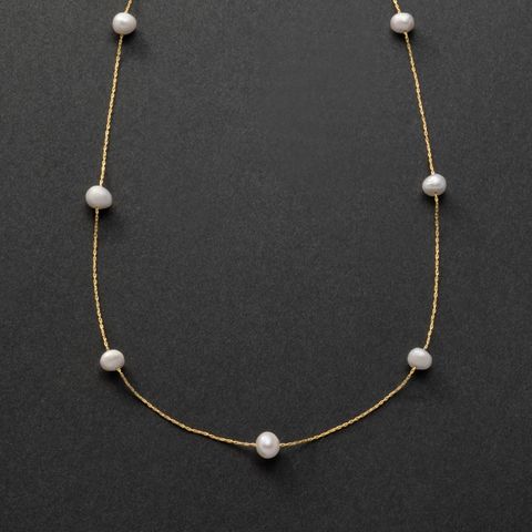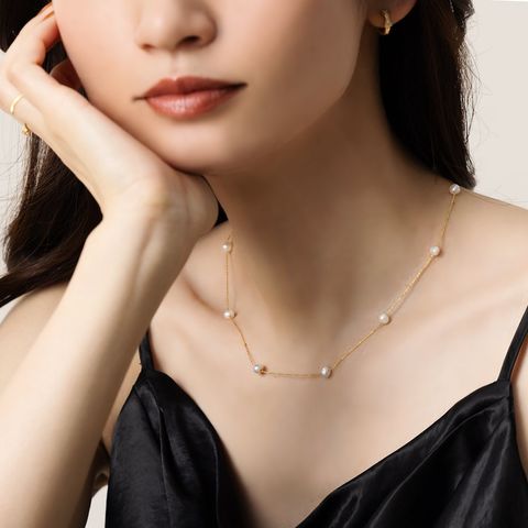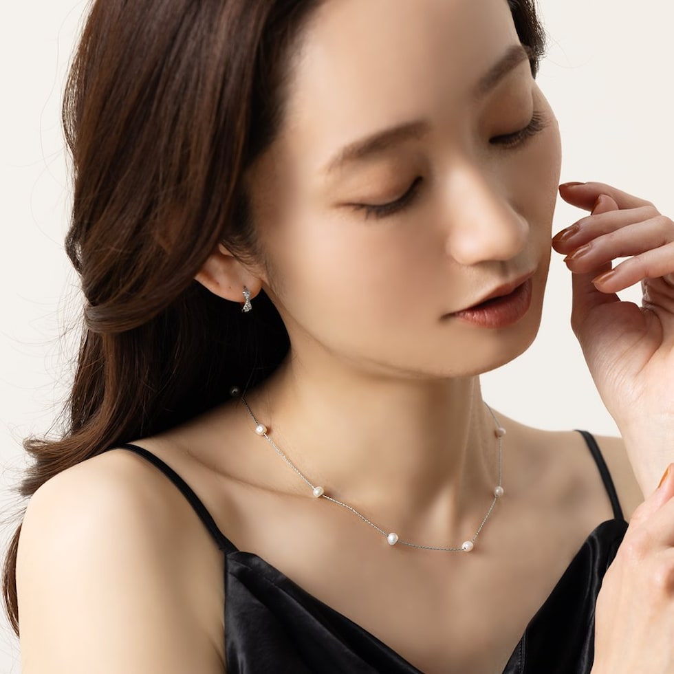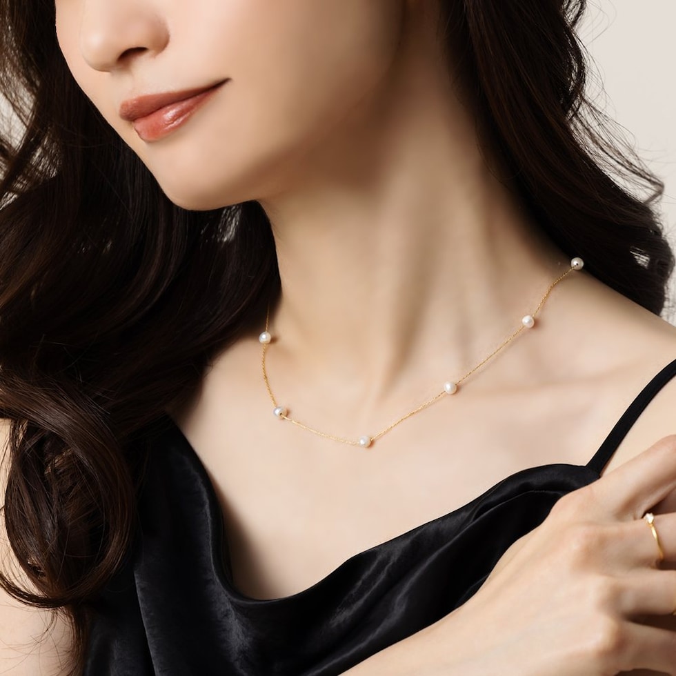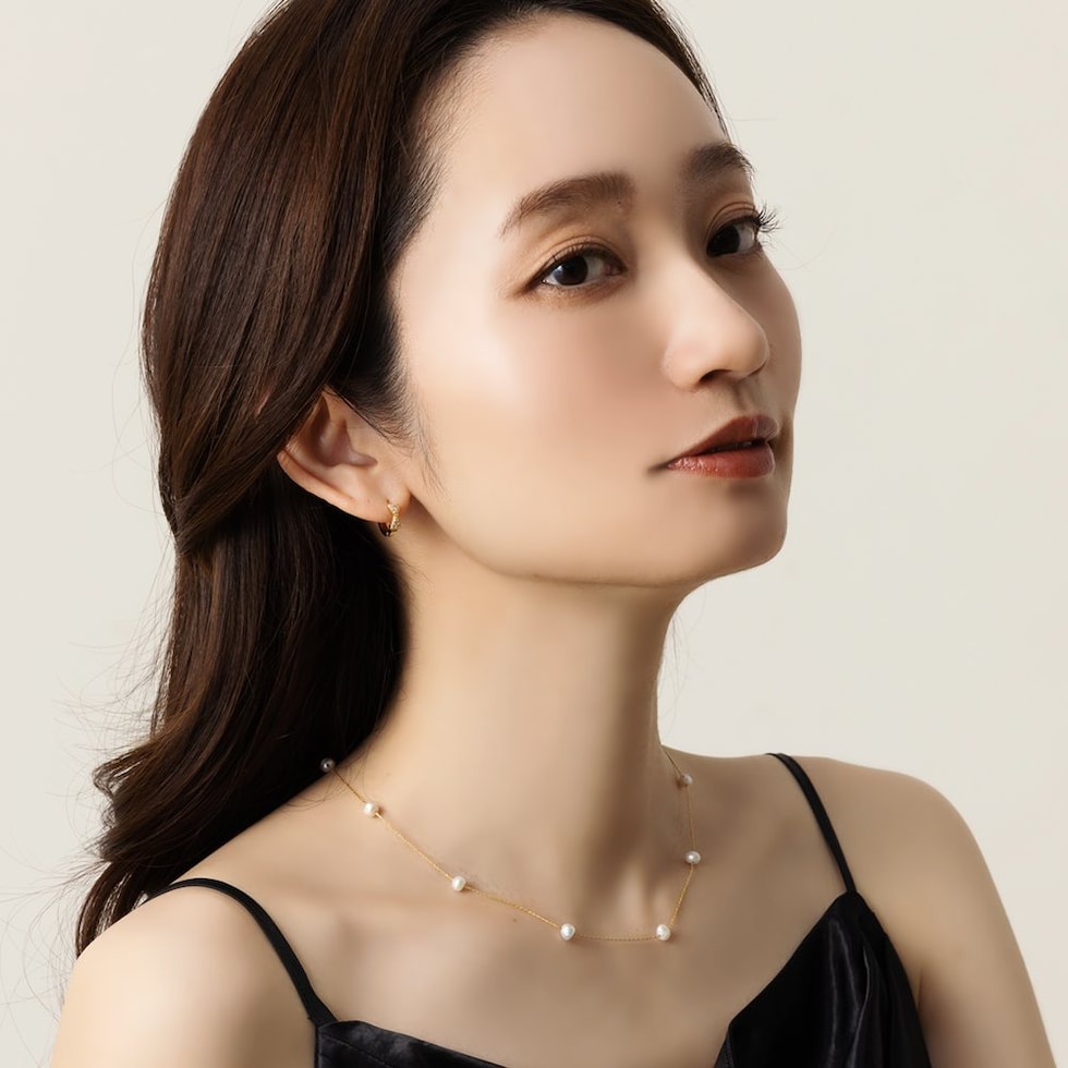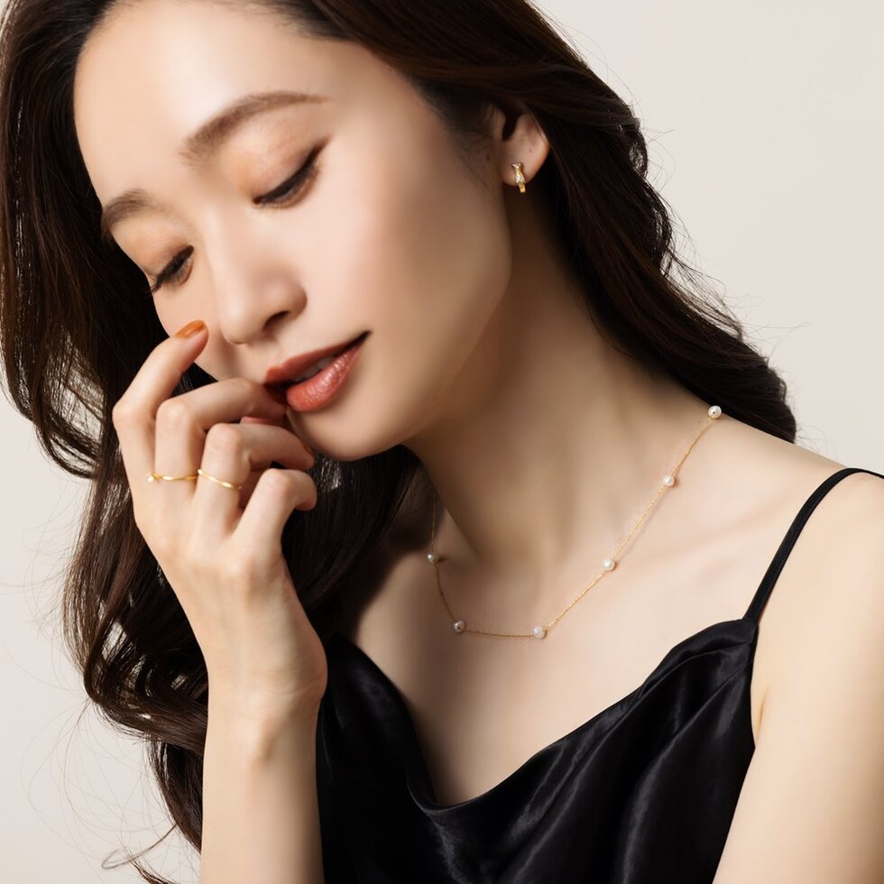 天然素材の淡水パールを使用したステーションネックレス。繊細チェーンにスムーズにつながる淡水パールが華奢ながらも存在感のある逸品。ステーションデザインが上品かつ知的な印象で、デコルテをより女性らしく美しくアピール◎パールの似合う時季にマストなアイテムです。