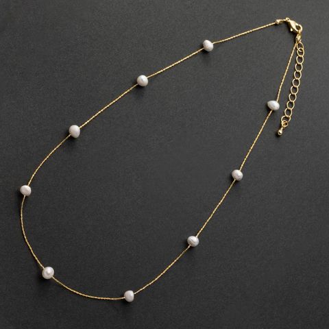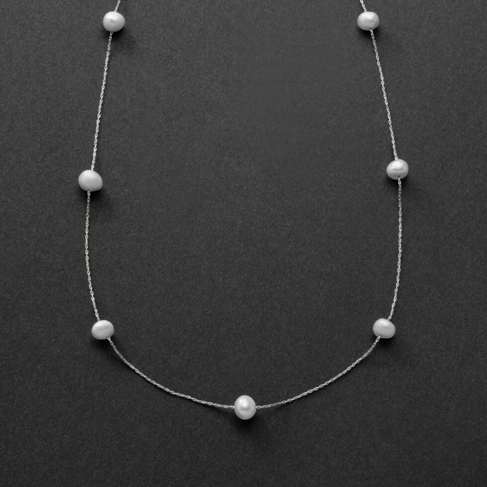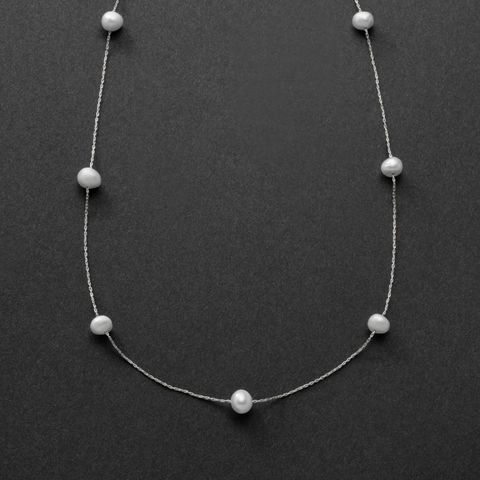 ネックレス レディース ショート チェーン 淡水パール ステーション ステーションパール 極細 細い cream dot ゆうパケット [シルバー_ワンサイズ]