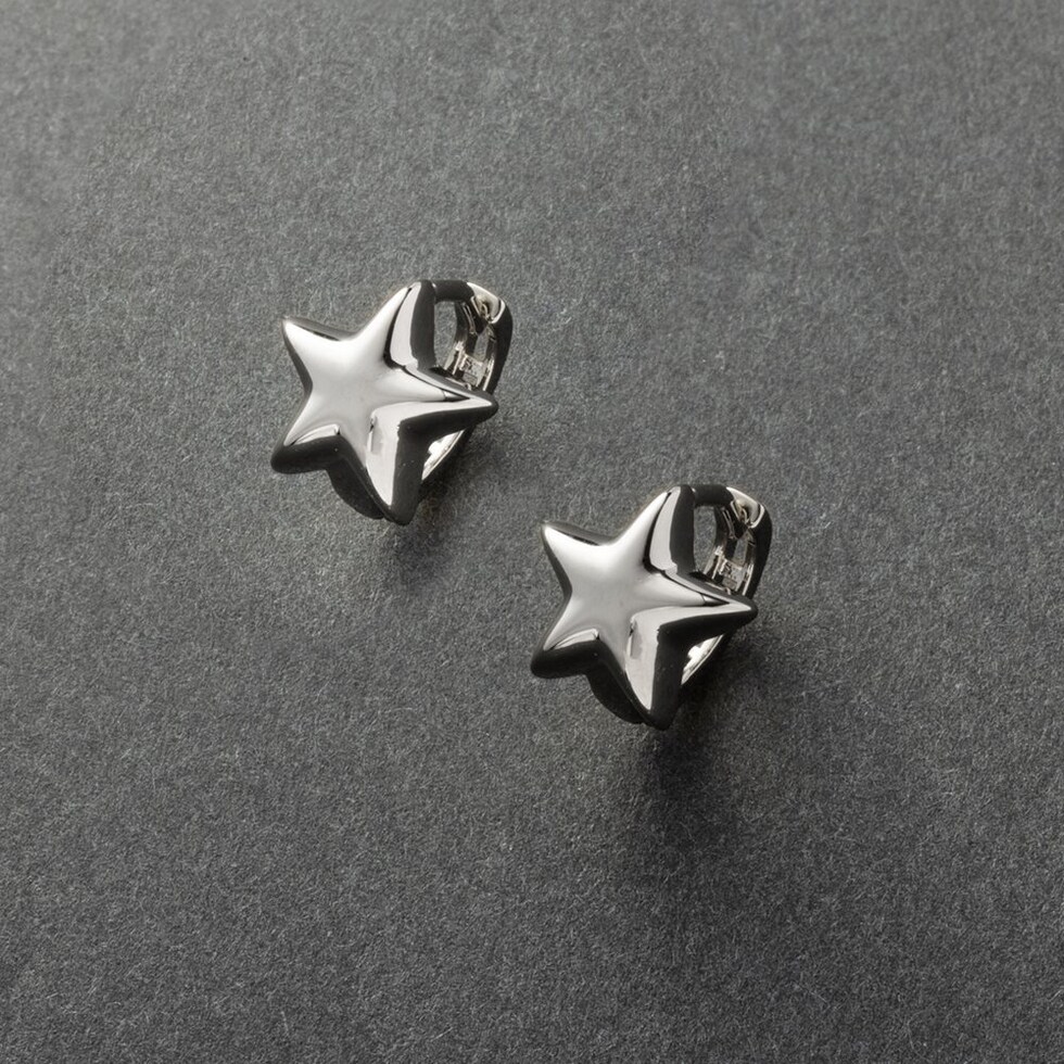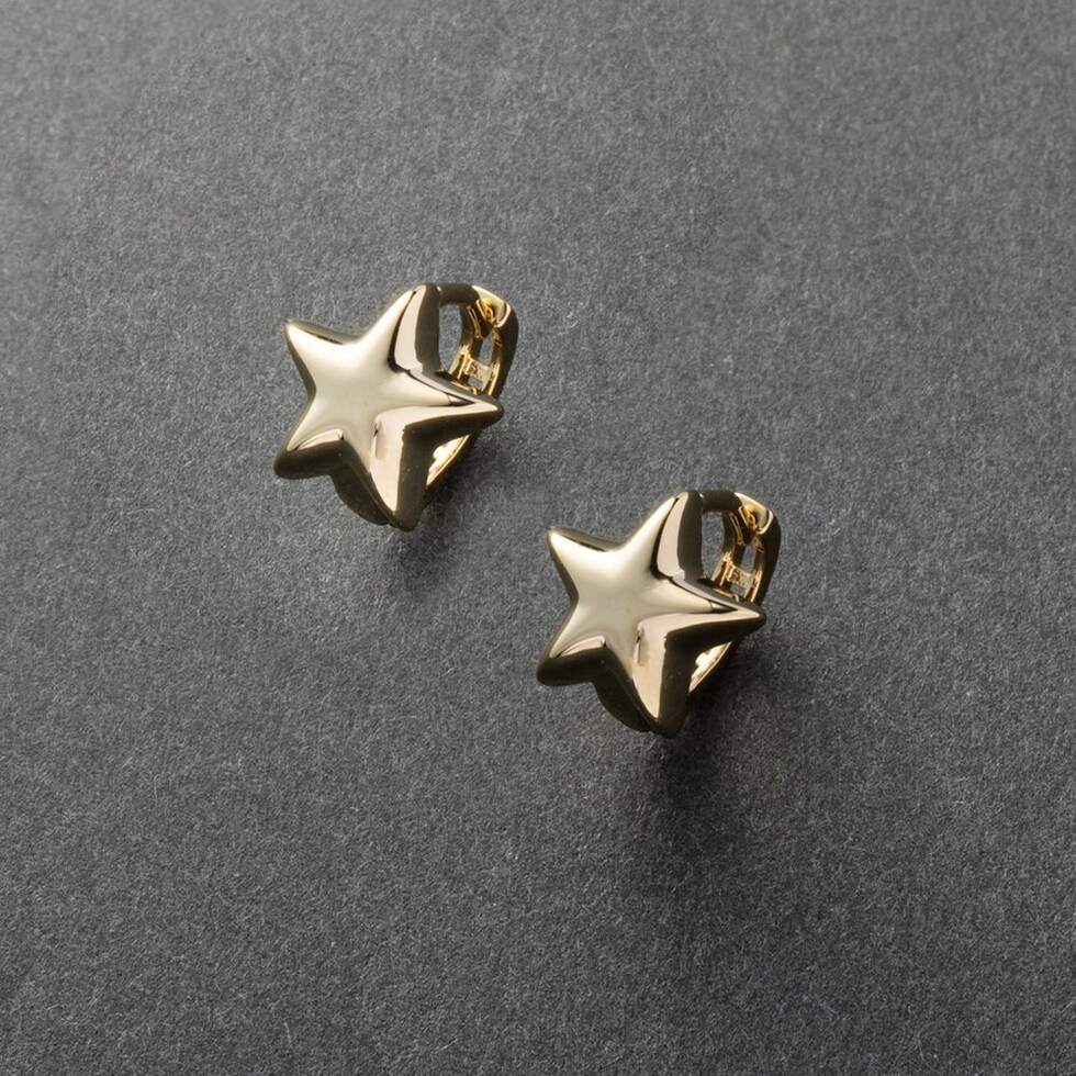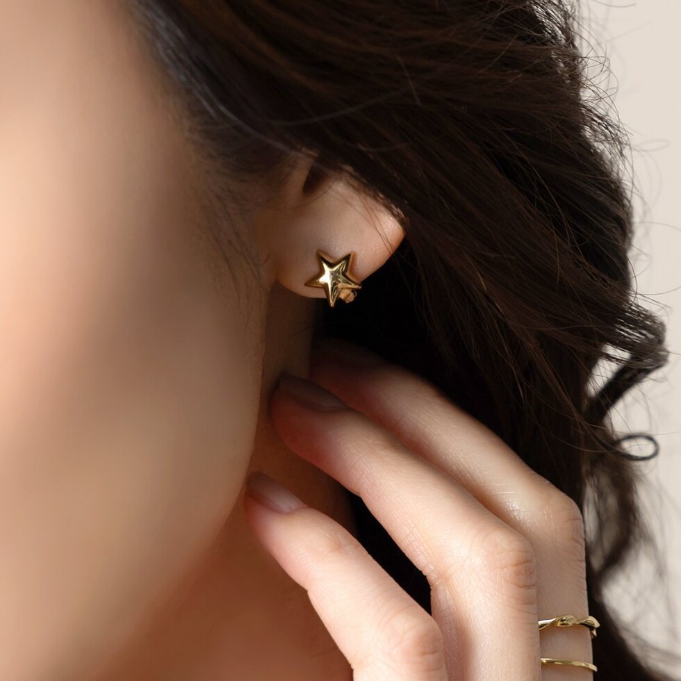 小ぶりでぷっくりとしたスターモチーフのキャッチレスピアス。耳元にすっと馴染むフープタイプで、おしゃれ感のある横顔を引き出してくれます。コーデにエッジの効いたアクセントとこなれ感をプラスしてくれる、デイリーに使いやすいひと品◎