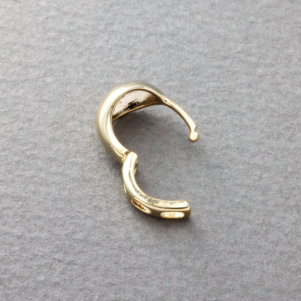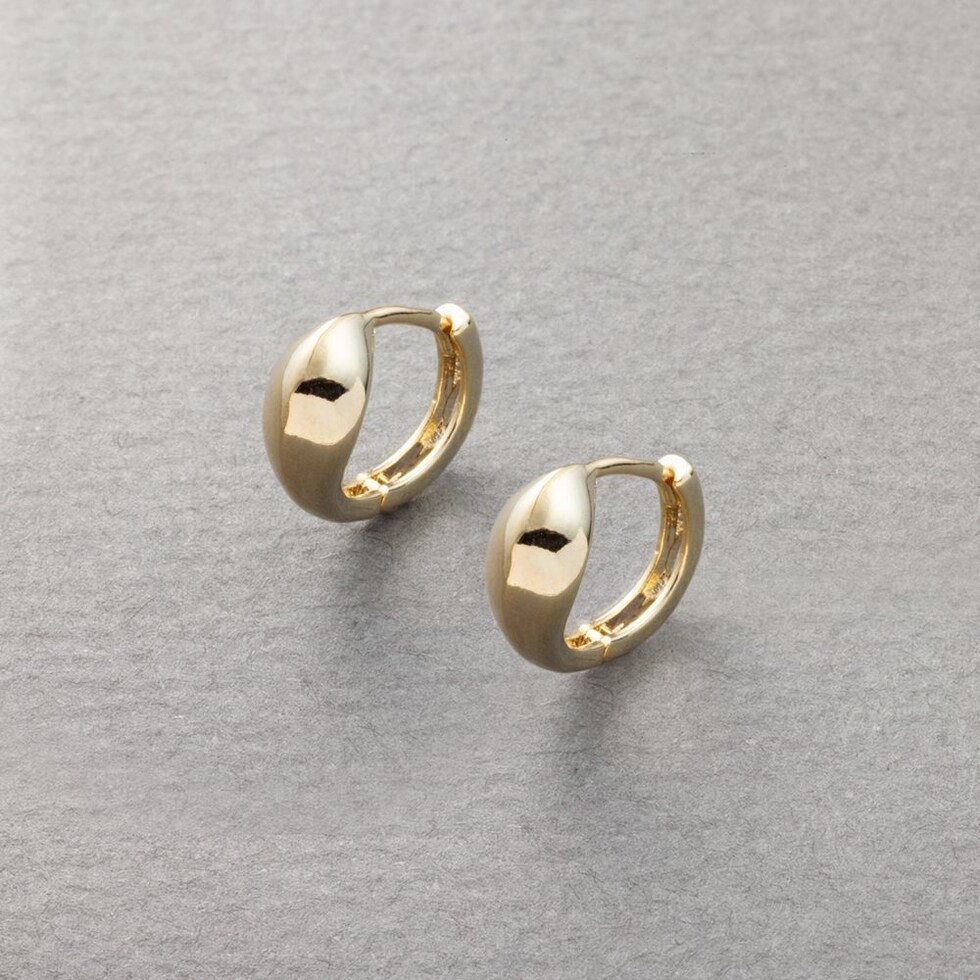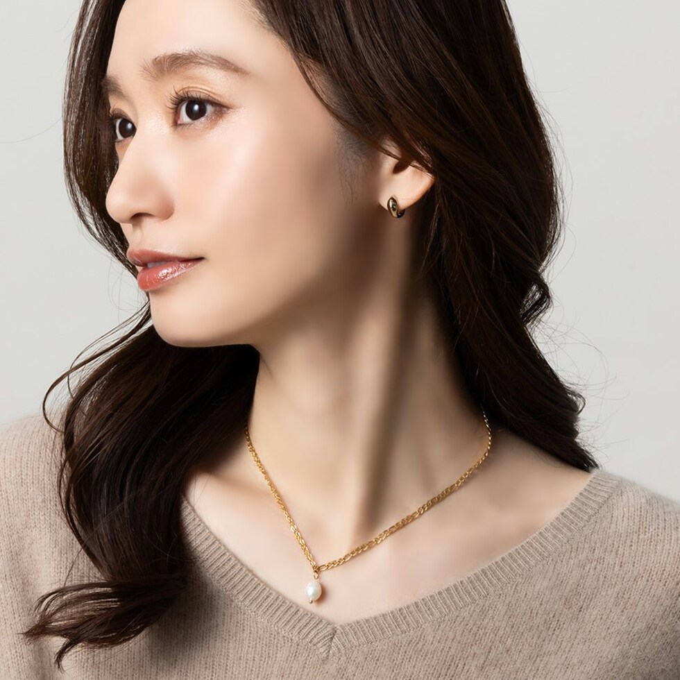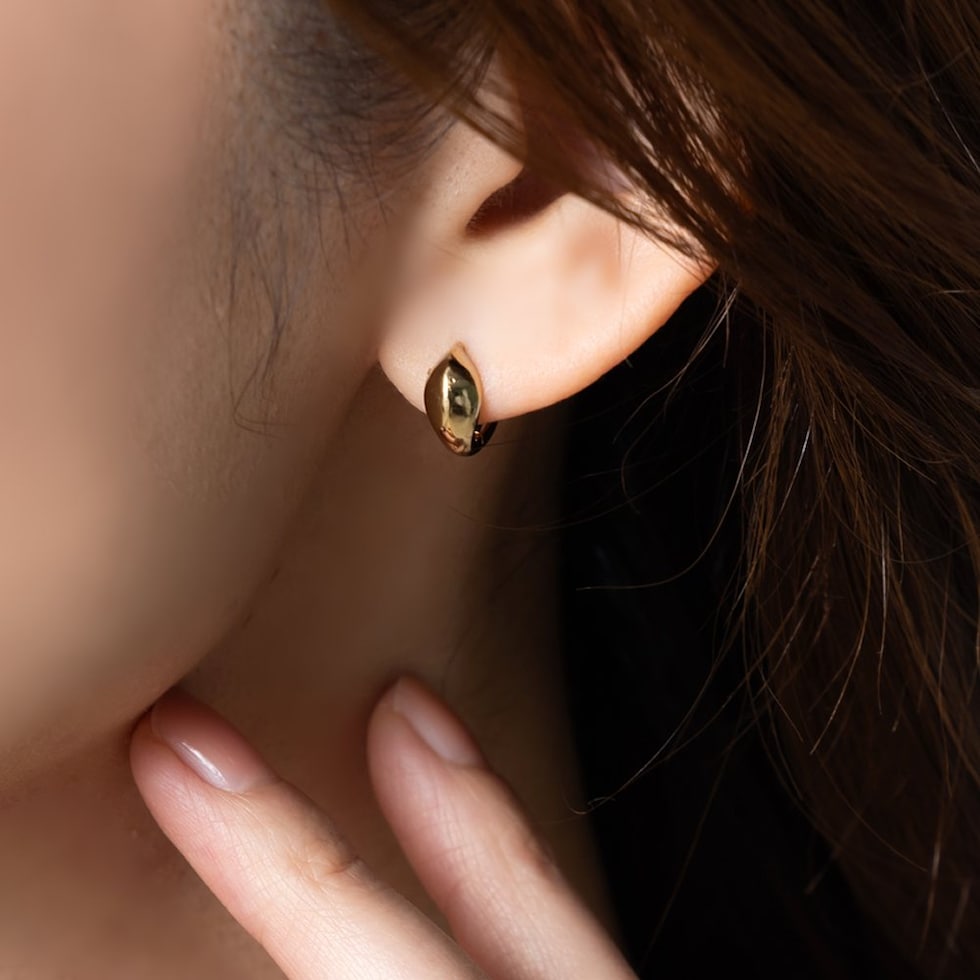 ドロップモチーフのようなぷっくりとしたシルエットのキャッチレスフープピアス。ミニマムなサイジングですが、ちょっとユニークな遊び心のあるデザインで存在感も◎耳もとにすっとなじんで、おしゃれ感のある横顔を引き出してくれます。