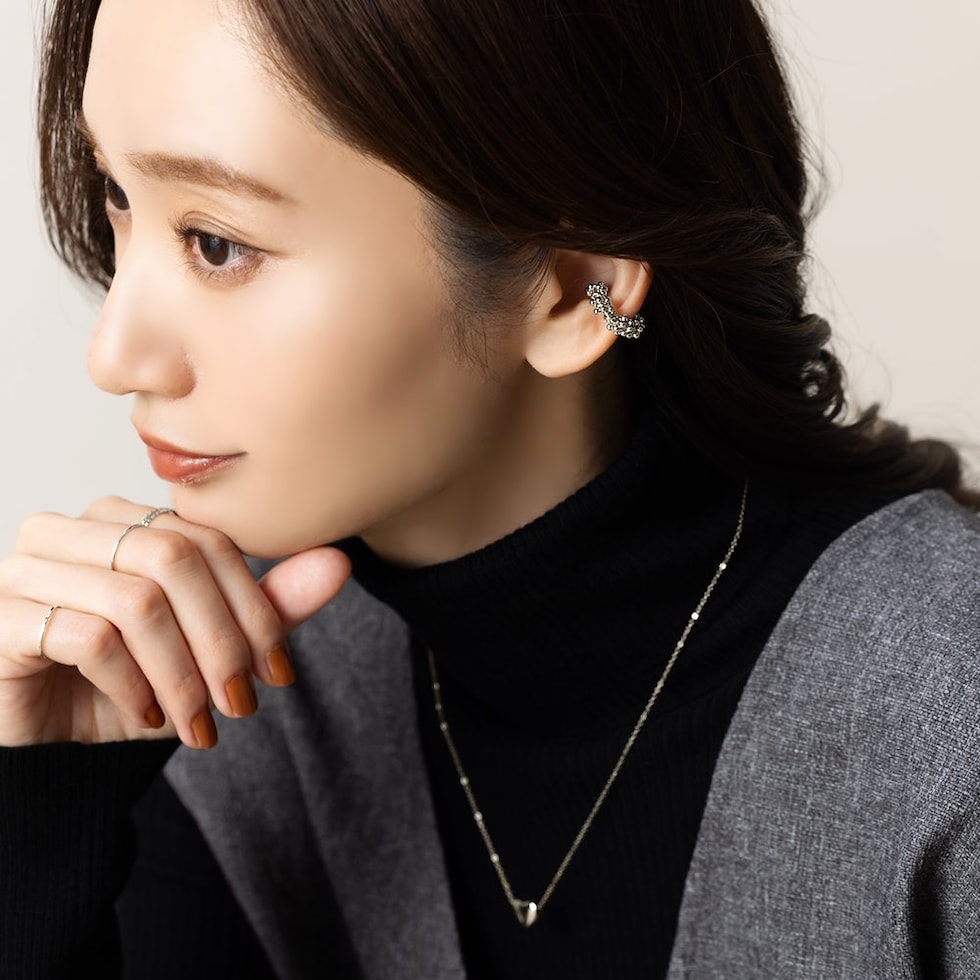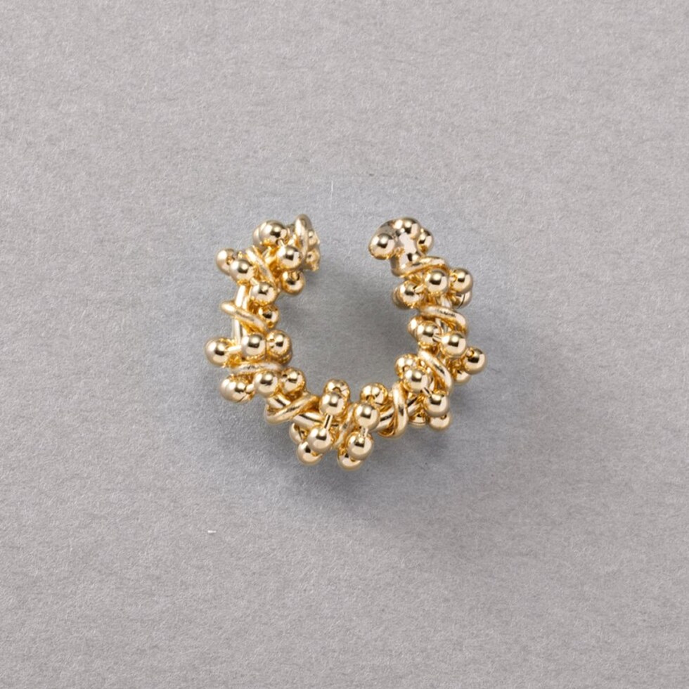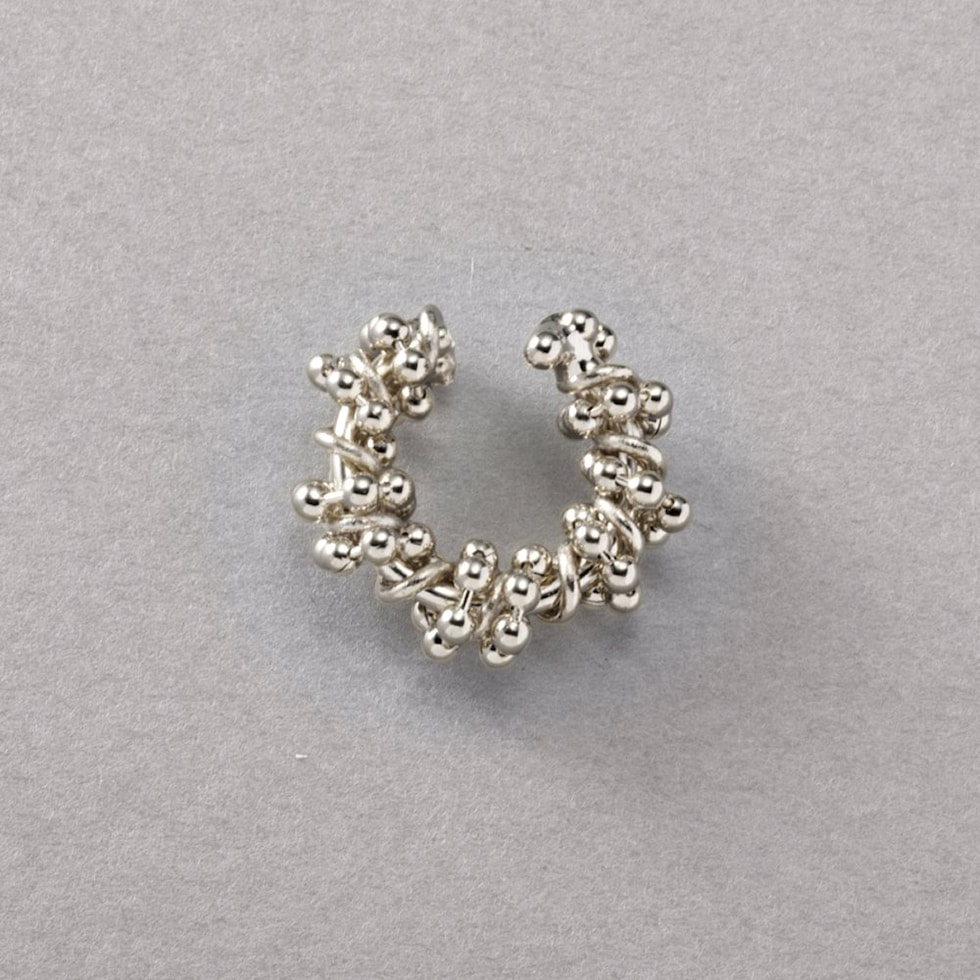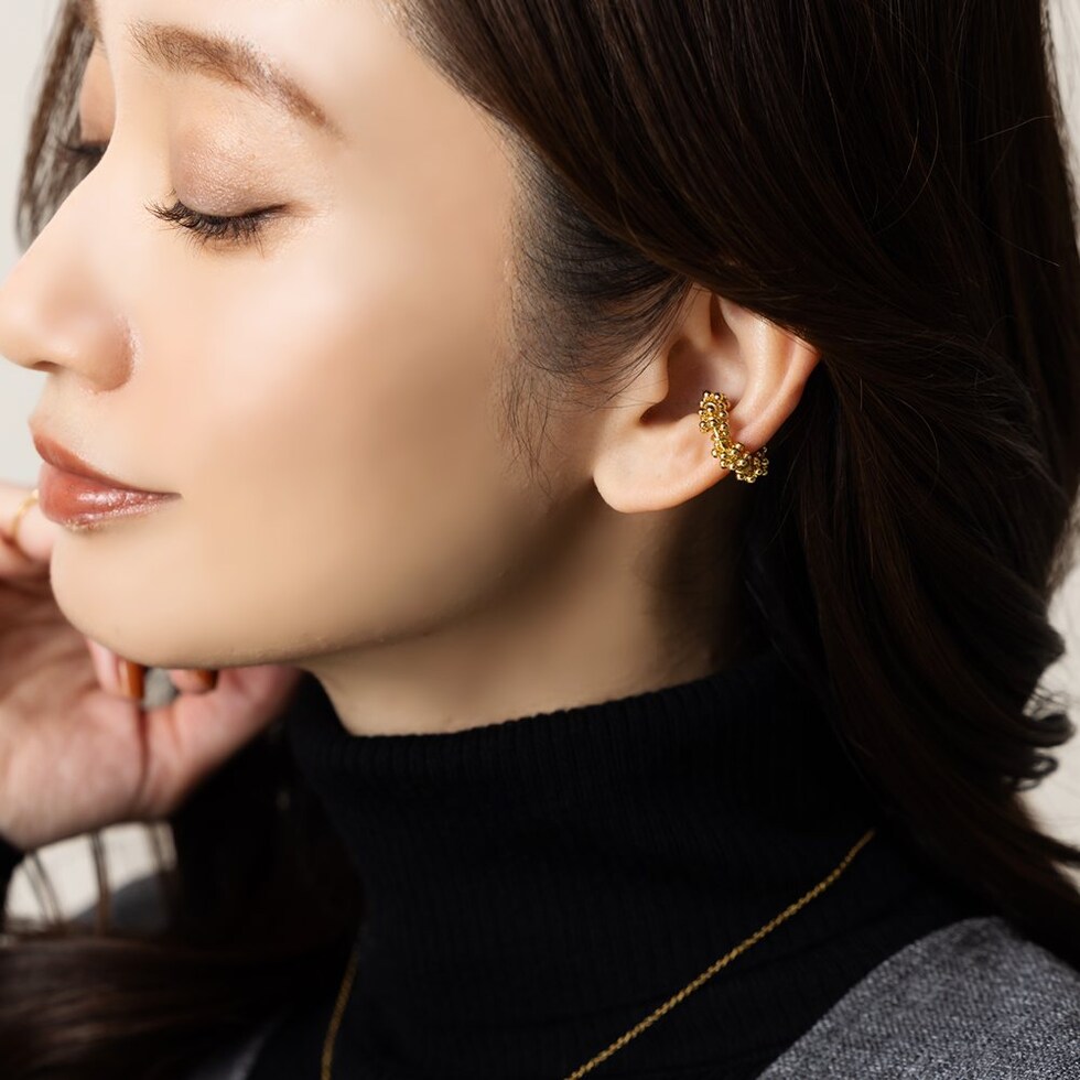 つぶつぶバブルの片耳用イヤーカフ。シンプルだけど粒々としたバブルメタルの繊細な艶めきが耳元で映える逸品。これひとつでお顔周りに華を添えてくれそう◎他のピアスやカフと重ね着けもオススメ。