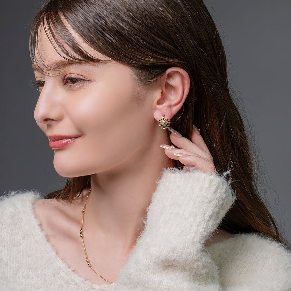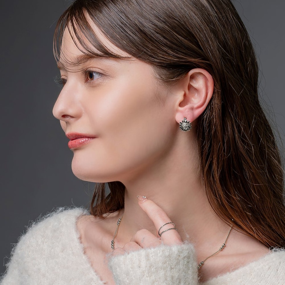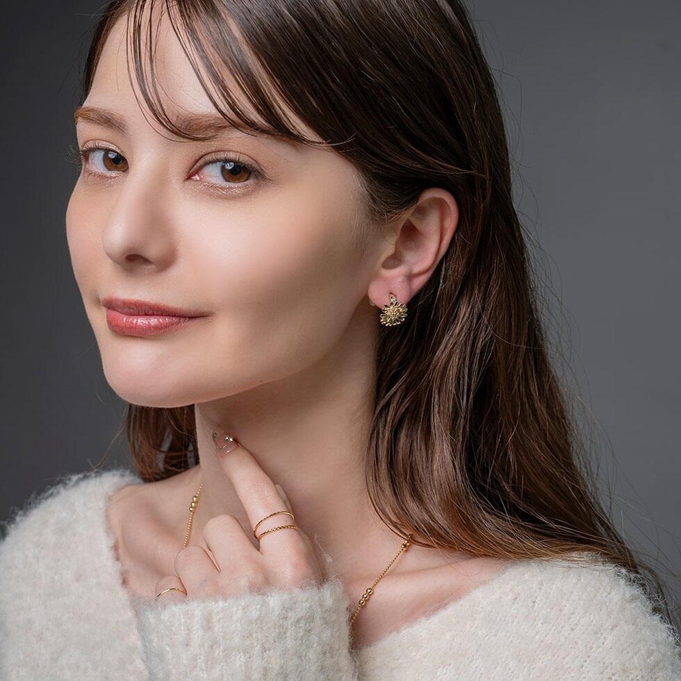 デイジーフラワーが大人可愛い雰囲気たっぷりのイヤリング。甘くなりがちなフラワーも、上品な艶感のメタルなので大人っぽく身につけられます。シンプルコーデのアクセント使いにぴったり◎