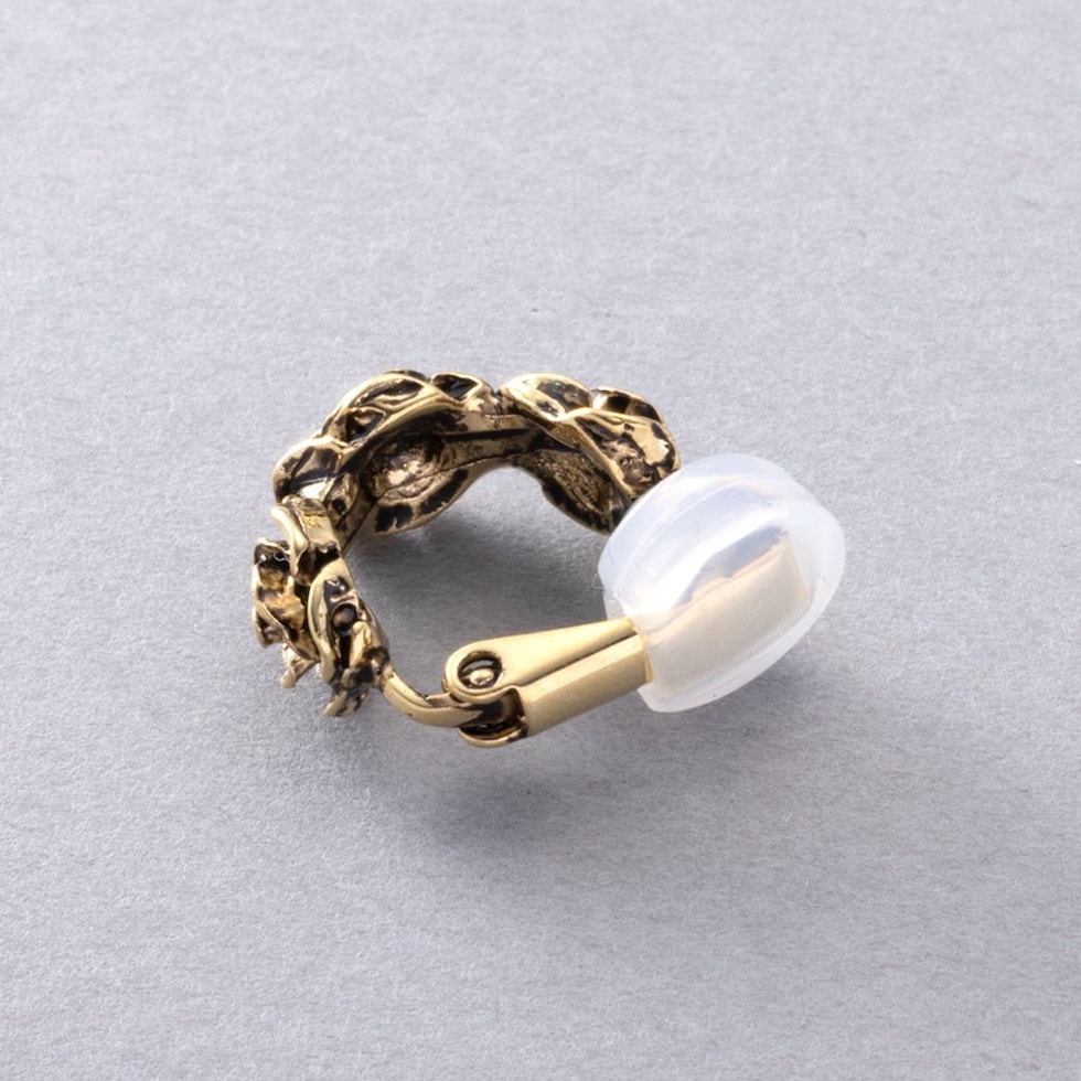 イヤリング レディース フープ フラワー メタル アンティーク調 立体的 シリコンカバー クリップ式 cream dot ゆうパケット [ゴールド_イヤリング]