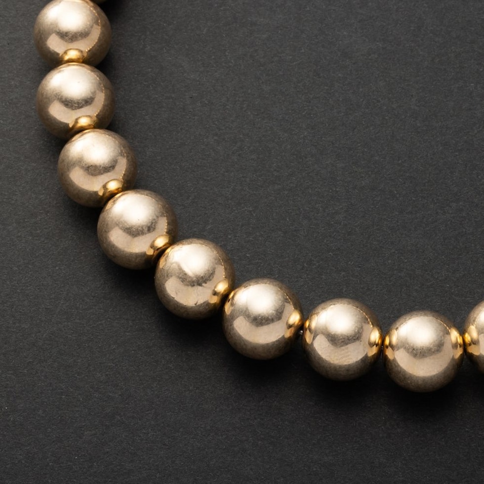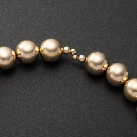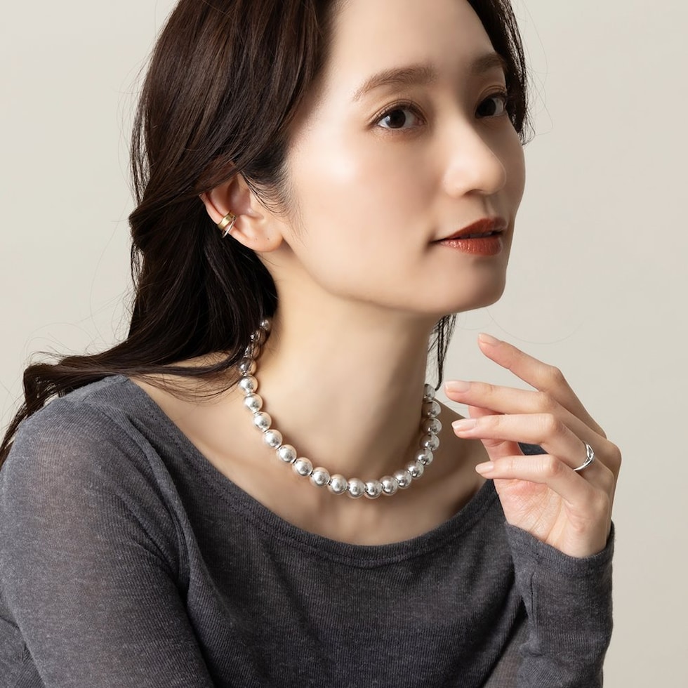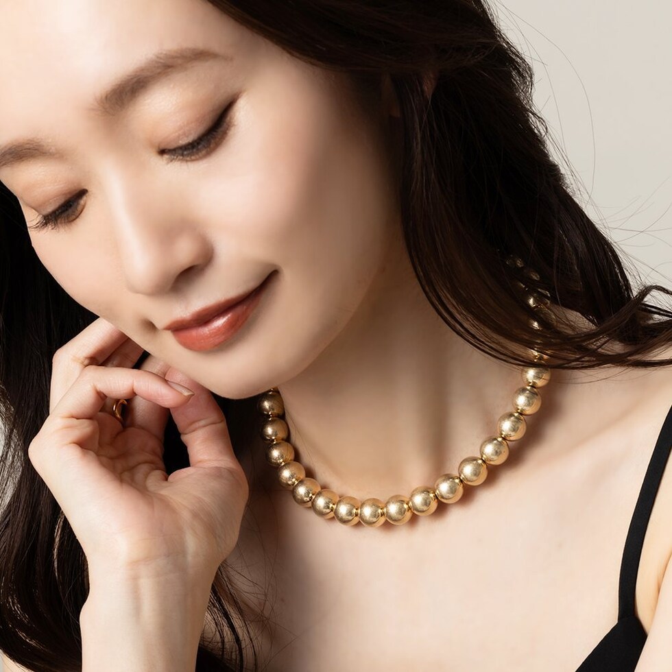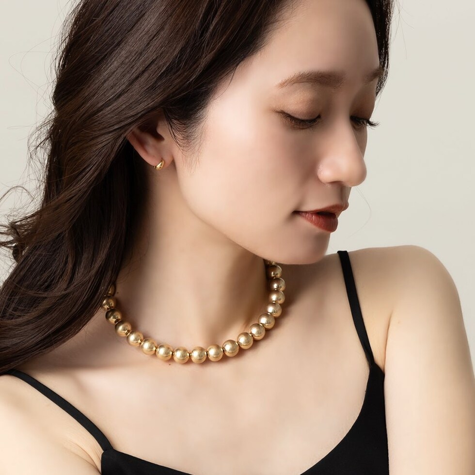 大粒のメタルボールを連ねたボリューミーなシルエットのチョーカー。控えめなヴィンテージ加工が落ち着きのある雰囲気で、肌にスッと馴染みます。シンプルコーデもこれひとつでこなれ感ある華やかな仕上がりに◎